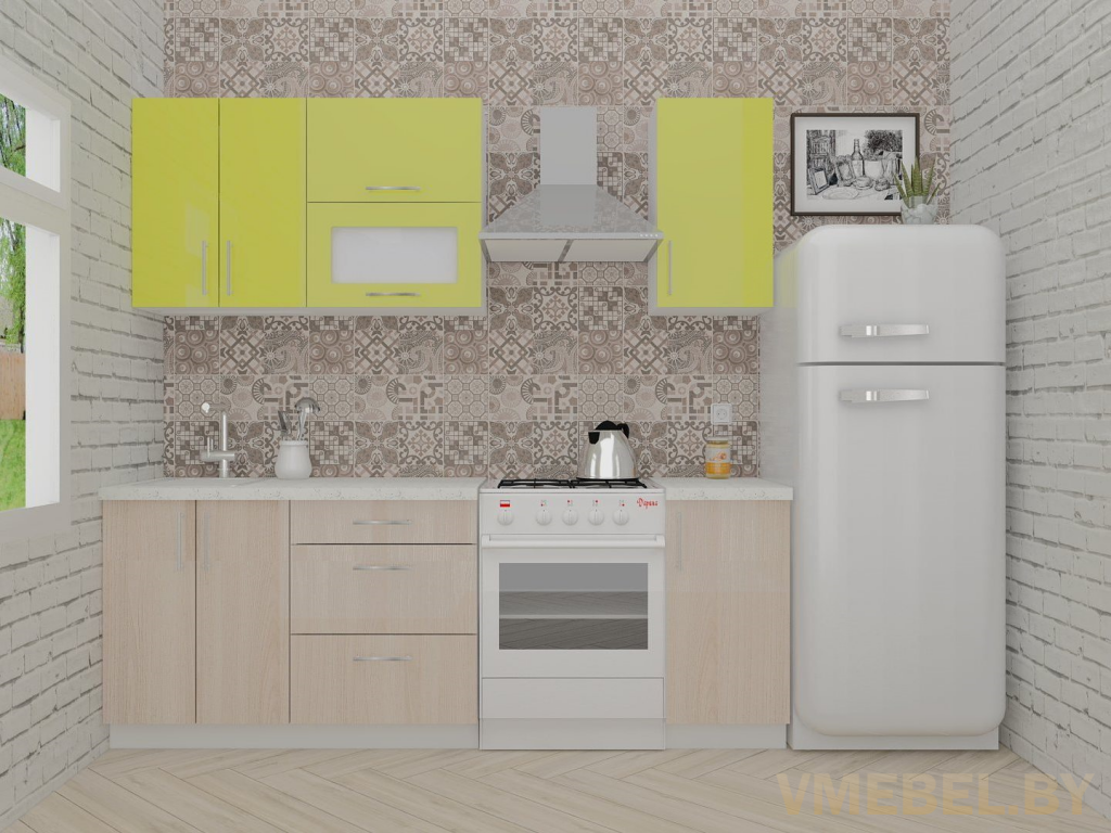 ВерсоЛайн 2-1.6 (ясень шимо светлый/зеленый лайм) Материал фасада Акрил Сушка Хром Фурнитура Blum Артикул: -