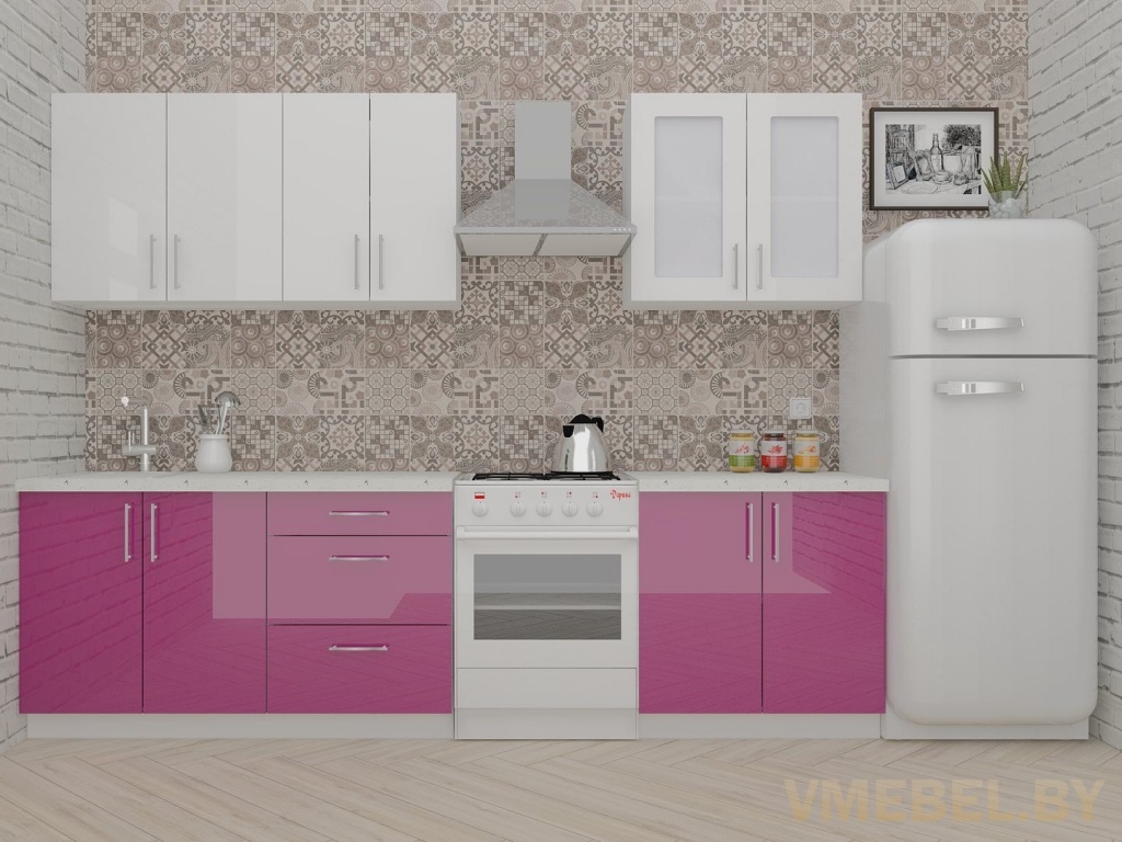 Основные Длина кухни: 220 см Конструкция кухни: линейная Материал каркаса: ЛДСП Эггер Белый базовый 18мм W908 SM Тип фасада: прямой Материал верхних фасадов: Постформинг (пластик) белый Материал нижних фасадов: Постформинг (пластик) лиловый Столешница: отдельная на каждый шкаф либо цельная на каждый участок Материал столешницы: Plattan (38 мм) Мрамор марквина белый 3028 (влагозащитная ДСП EGGER с каплеуловителем) Выдвижные ящики: 3 шт. Направляющие: шариковые направляющие полного выдвижения с доводчиками GTV Versalite Петли: Петля накладная с доводчиком GTV PRESTIGE Навесы: Крепление верхних ящиков к стене на регулируемые навесы на монтажную планку, монтажная планка в комплекте Крепление петель к боковине: на евровинтах Конструкция задней стенки: премиум (задняя стенка ящиков вставляется в фрезеруемый в паз) Цоколь: пластиковый белый H-100 Сушка: белая стандарт Ручка: Ручка UA-337 160 мм алюминий