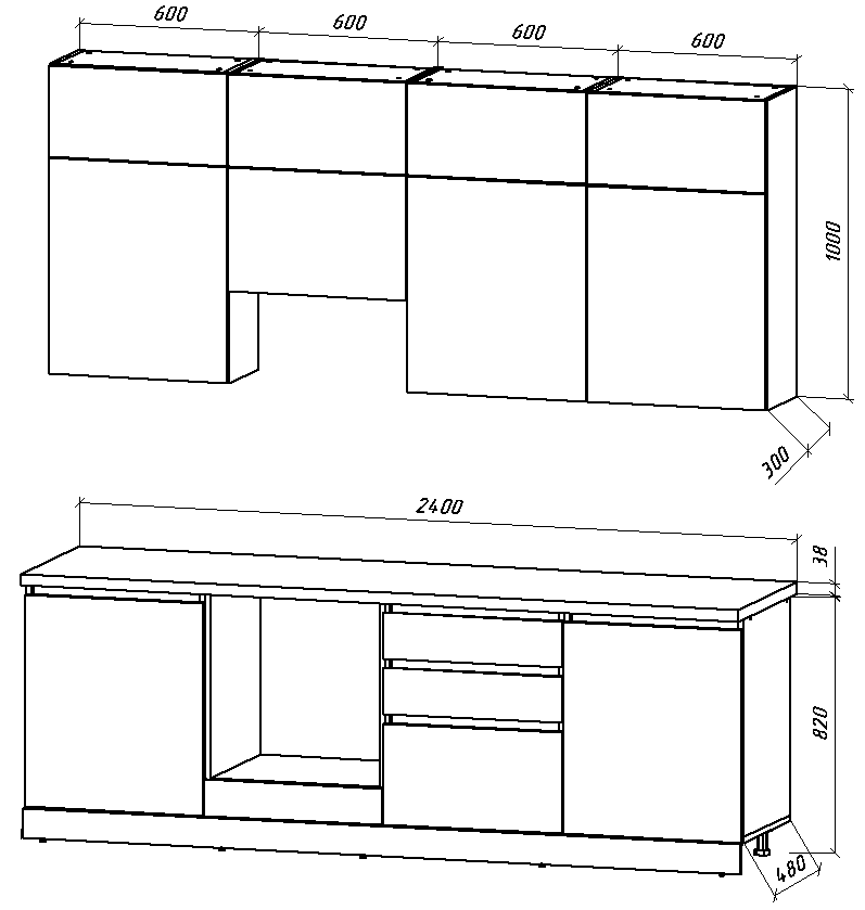 Высота верхних шкафов: 100 см