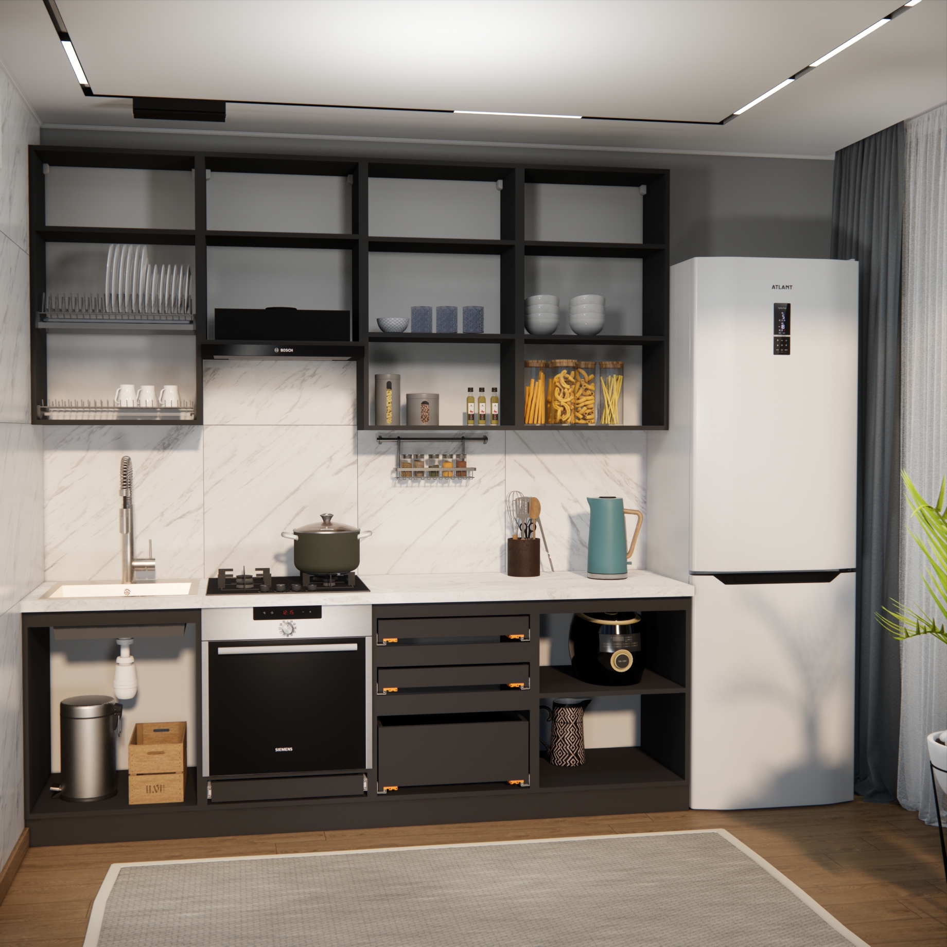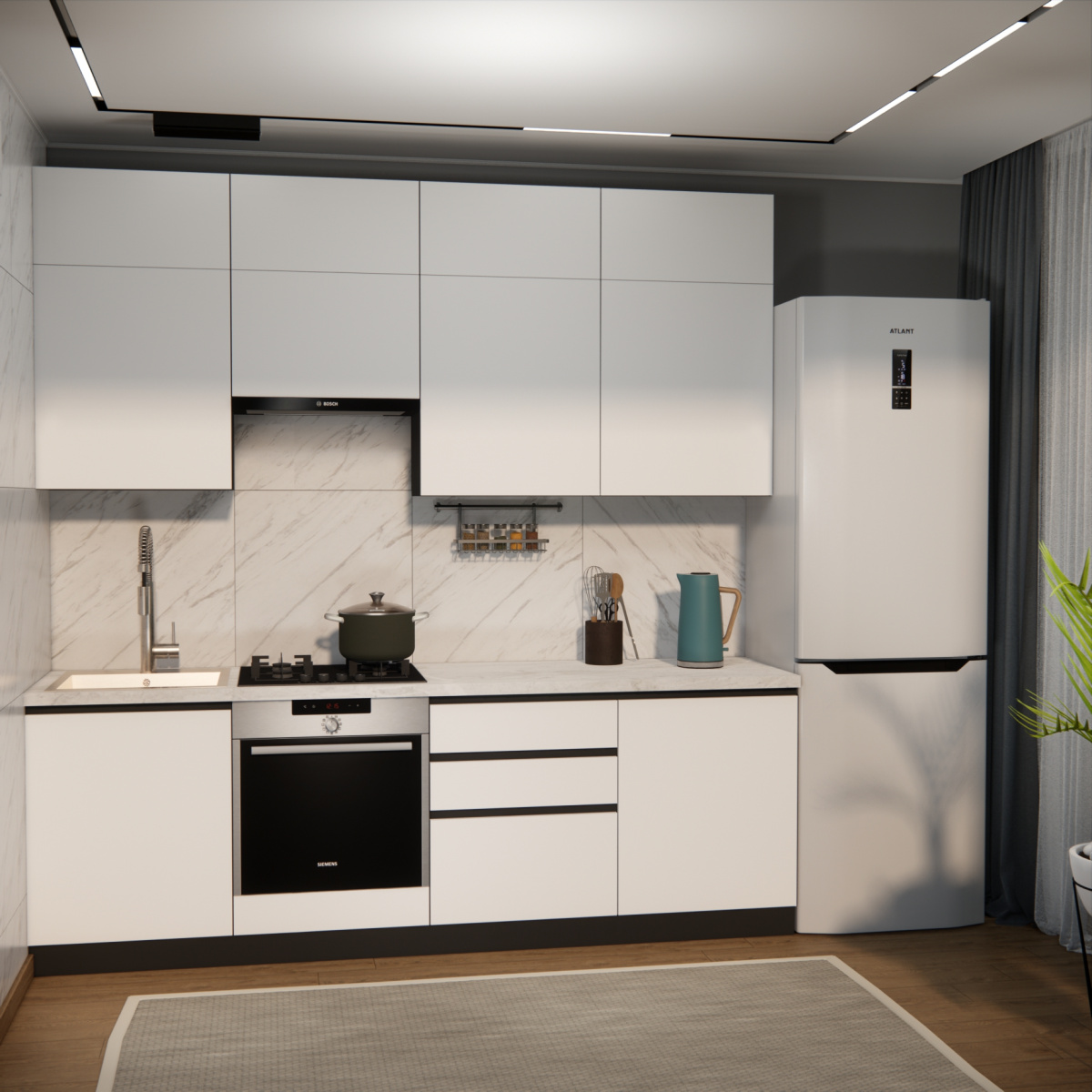 Глубина нижних шкафов: 60 см (48 см глубина по корпусу)