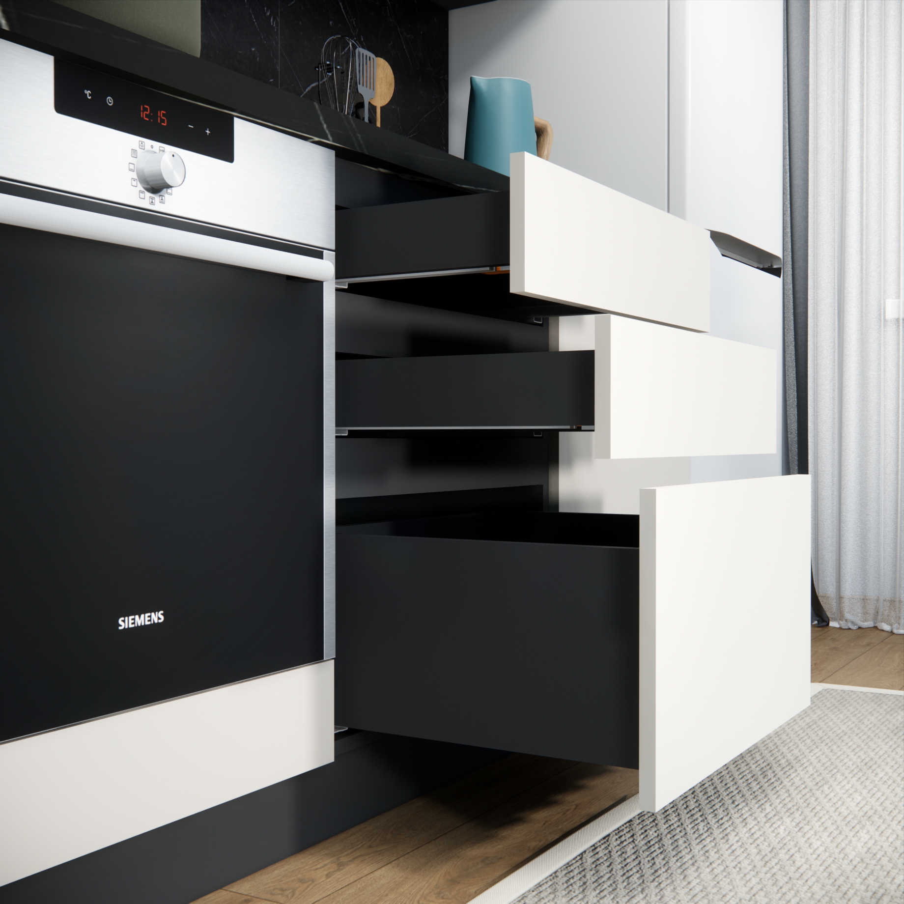 Глубина нижних шкафов: 60 см (48 см глубина по корпусу)