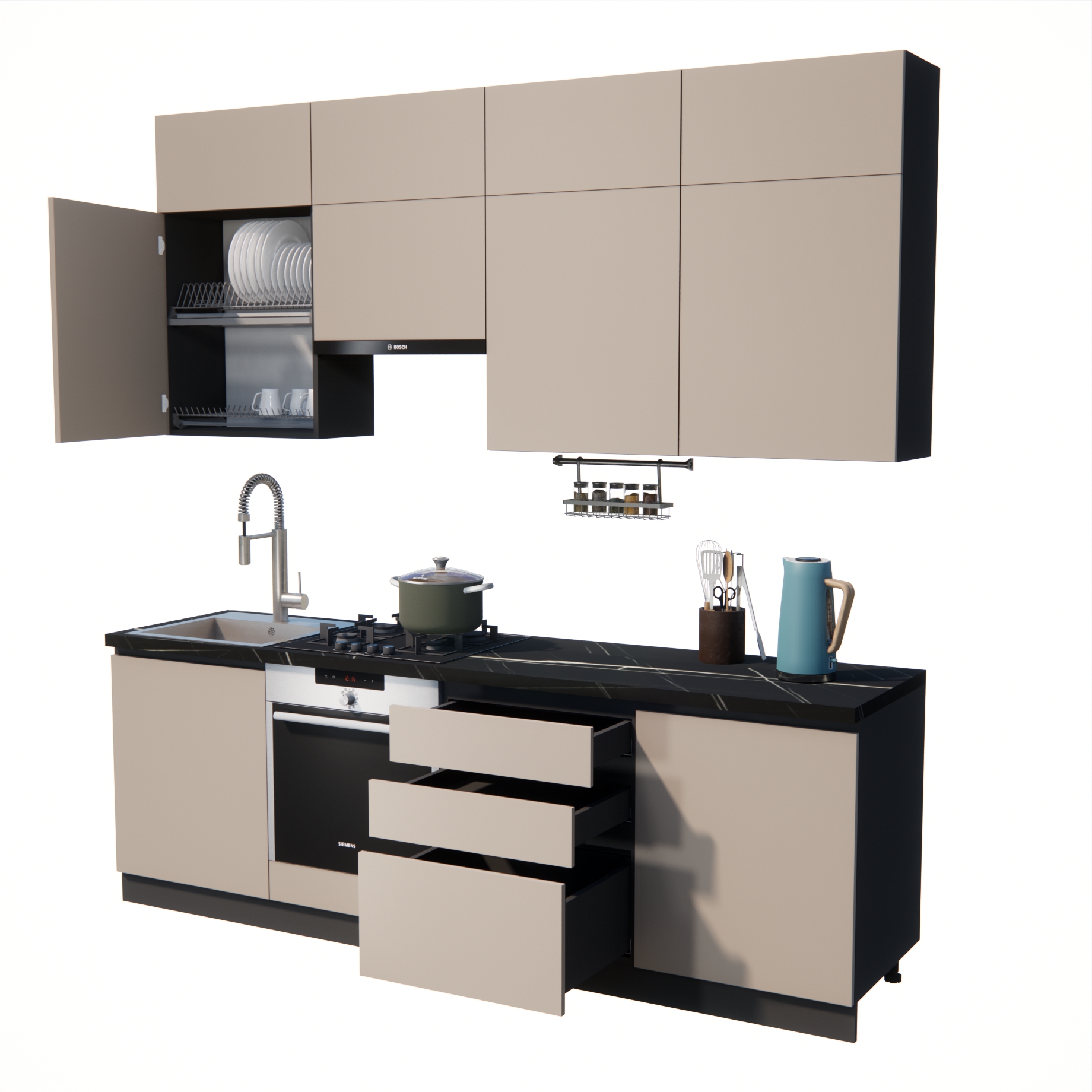 Глубина нижних шкафов: 60 см (48 см глубина по корпусу)