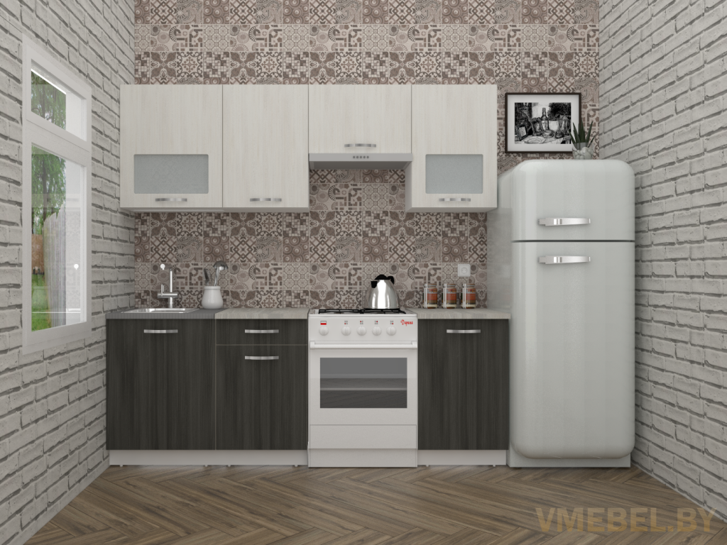 Основные Длина кухни: 220 см Конструкция кухни: линейная Материал каркаса: ЛДСП Эггер Белый базовый 18мм W908 SM Тип фасада: прямой Материал верхних фасадов: ЛДСП северное дерево светлый Материал нижних фасадов: ЛДСП северное дерево темный Столешница: отдельная на каждый шкаф либо цельная на каждый участок Материал столешницы: Skif (26 мм) 120 Олива жемчужная Выдвижные ящики: 1 шт. Направляющие: шариковые направляющие полного выдвижения GTV (Польша) Петли: Петля накладная без доводчика GTV (Польша) Крепление петель к боковине: на евровинтах Конструкция задней стенки: внахлест Цоколь: ЛДСП белый H-100 Сушка: белая стандарт Ручка: UN 90-128 матовый хром