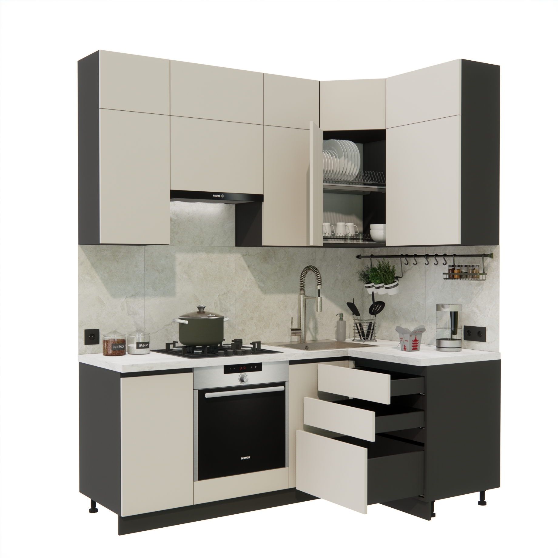 Глубина нижних шкафов: 60 см (48 см глубина по корпусу)
