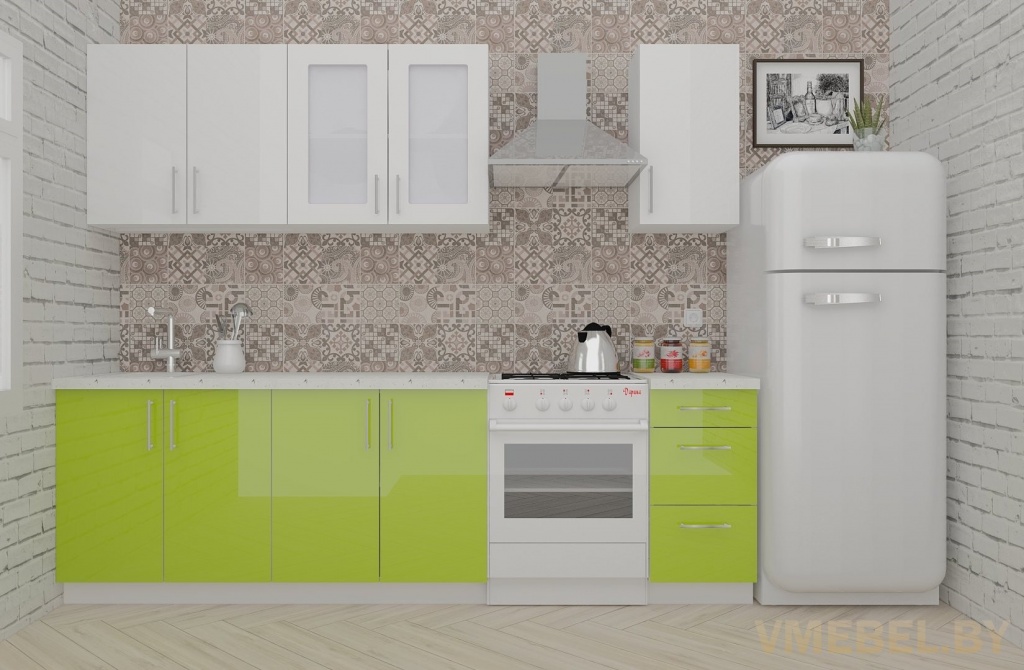 Основные Длина кухни: 200 см Конструкция кухни: линейная Материал каркаса: ЛДСП Эггер Белый базовый 18мм W908 SM Тип фасада: прямой Материал верхних фасадов: Постформинг (пластик) белый Материал нижних фасадов: Постформинг (пластик) лайм яркий Столешница: отдельная на каждый шкаф либо цельная на каждый участок Материал столешницы: Plattan (38 мм) Мрамор марквина белый 3028 (влагозащитная ДСП EGGER с каплеуловителем) Выдвижные ящики: 3 шт. Направляющие: шариковые направляющие полного выдвижения с доводчиками GTV Versalite Петли: Петля накладная с доводчиком GTV PRESTIGE Навесы: Крепление верхних ящиков к стене на регулируемые навесы на монтажную планку, монтажная планка в комплекте Крепление петель к боковине: на евровинтах Конструкция задней стенки: премиум (задняя стенка ящиков вставляется в фрезеруемый в паз) Цоколь: пластиковый белый H-100 Сушка: белая стандарт Ручка: Ручка UA-337 160 мм алюминий