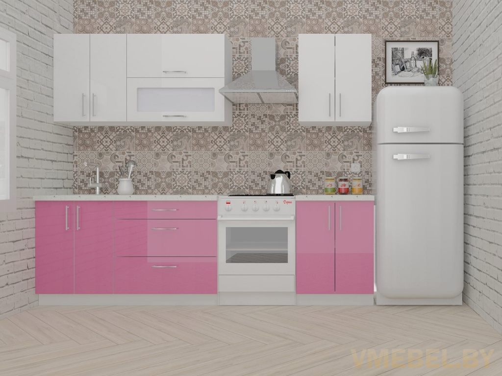Основные Длина кухни: 200 см Конструкция кухни: линейная Материал каркаса: ЛДСП Эггер Белый базовый 18мм W908 SM Тип фасада: прямой Материал верхних фасадов: Постформинг (пластик) белый Материал нижних фасадов: Постформинг (пластик) розовый Столешница: отдельная на каждый шкаф либо цельная на каждый участок Материал столешницы: Plattan (38 мм) Мрамор марквина белый 3028 (влагозащитная ДСП EGGER с каплеуловителем) Выдвижные ящики: 3 шт. Направляющие: шариковые направляющие полного выдвижения с доводчиками GTV Versalite Петли: Петля накладная с доводчиком GTV PRESTIGE Навесы: Крепление верхних ящиков к стене на регулируемые навесы на монтажную планку, монтажная планка в комплекте Крепление петель к боковине: на евровинтах Конструкция задней стенки: премиум (задняя стенка ящиков вставляется в фрезеруемый в паз) Цоколь: пластиковый белый H-100 Сушка: белая стандарт Ручка: Ручка UA-337 160 мм алюминий