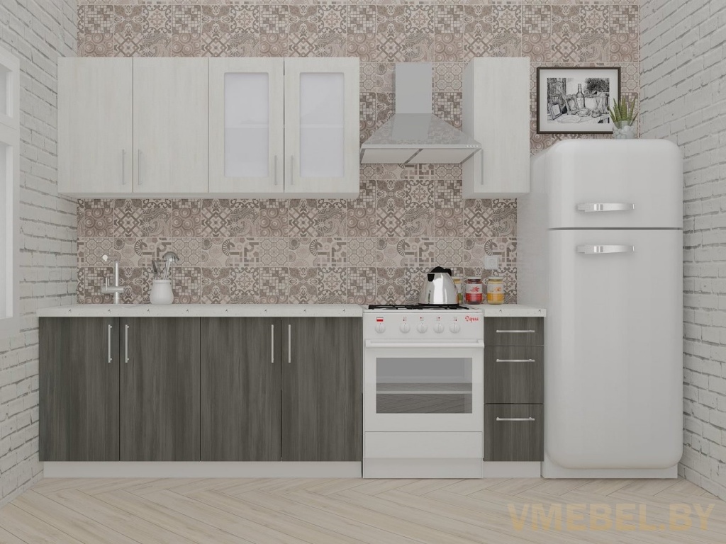Основные Длина кухни: 190 см Конструкция кухни: линейная Материал каркаса: ЛДСП Эггер Белый базовый 18мм W908 SM Тип фасада: прямой Материал верхних фасадов: ЛДСП северное дерево светлое Материал нижних фасадов: ЛДСП северное дерево темное Столешница: отдельная на каждый шкаф либо цельная на каждый участок Материал столешницы: Plattan (38 мм) Мрамор марквина белый 3028 (влагозащитная ДСП EGGER с каплеуловителем) Выдвижные ящики: 3 шт. Направляющие: шариковые направляющие полного выдвижения с доводчиками GTV Versalite Петли: Петля накладная с доводчиком GTV PRESTIGE Навесы: Крепление верхних ящиков к стене на регулируемые навесы на монтажную планку, монтажная планка в комплекте Крепление петель к боковине: на евровинтах Конструкция задней стенки: премиум (задняя стенка ящиков вставляется в фрезеруемый в паз) Цоколь: пластиковый белый H-100 Сушка: белая стандарт Ручка: Ручка UA-337 160 мм алюминий