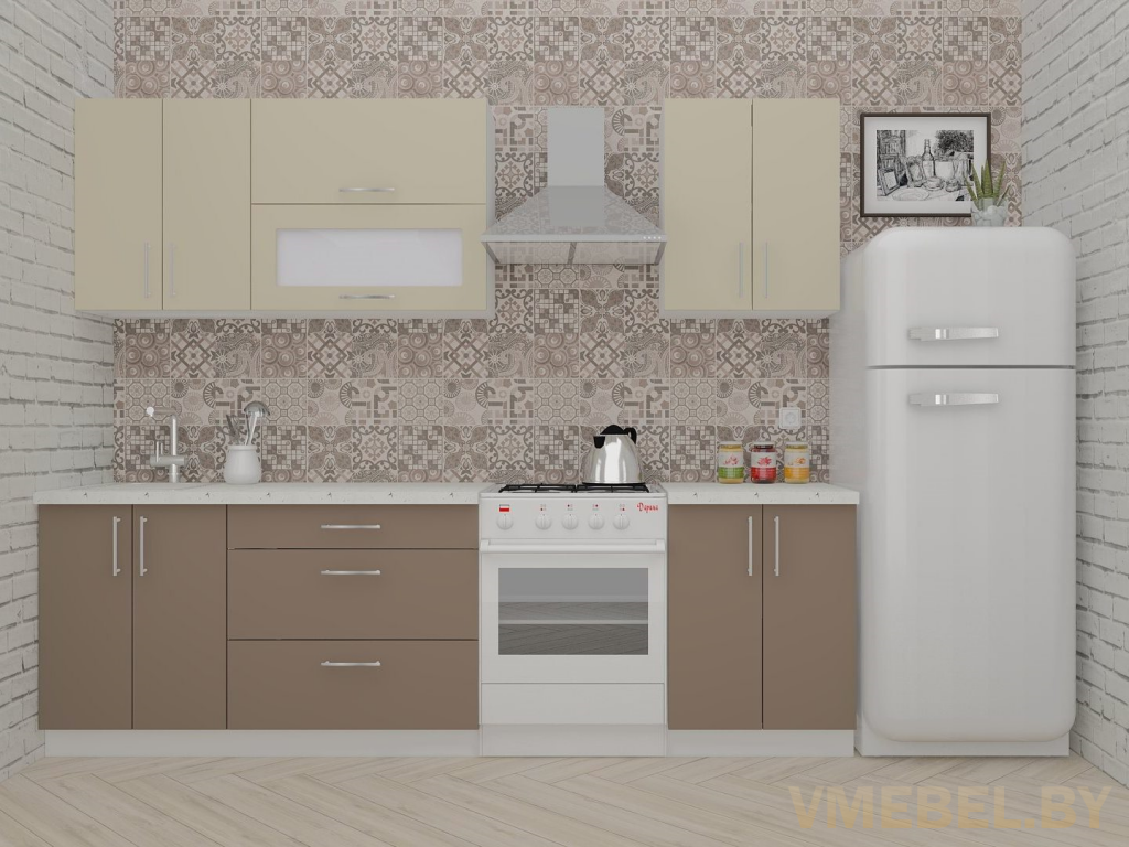 Основные Длина кухни: 200 см Конструкция кухни: линейная Материал каркаса: ЛДСП Эггер Белый базовый 18мм W908 SM Тип фасада: прямой Материал верхних фасадов: ЛДСП бежевый Материал нижних фасадов: ЛДСП латте Столешница: отдельная на каждый шкаф либо цельная на каждый участок Материал столешницы: Plattan (38 мм) Мрамор марквина белый 3028 (влагозащитная ДСП EGGER с каплеуловителем) Выдвижные ящики: 3 шт. Направляющие: шариковые направляющие полного выдвижения с доводчиками GTV Versalite Петли: Петля накладная с доводчиком GTV PRESTIGE Навесы: Крепление верхних ящиков к стене на регулируемые навесы на монтажную планку, монтажная планка в комплекте Крепление петель к боковине: на евровинтах Конструкция задней стенки: премиум (задняя стенка ящиков вставляется в фрезеруемый в паз) Цоколь: пластиковый белый H-100 Сушка: белая стандарт Ручка: Ручка UA-337 160 мм алюминий