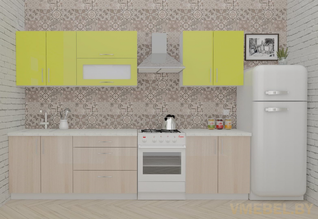 ВерсоЛайн 2-2.4 (ясень шимо светлый/зеленый лайм) Материал фасада Акрил Сушка Белая Фурнитура Blum Артикул: -