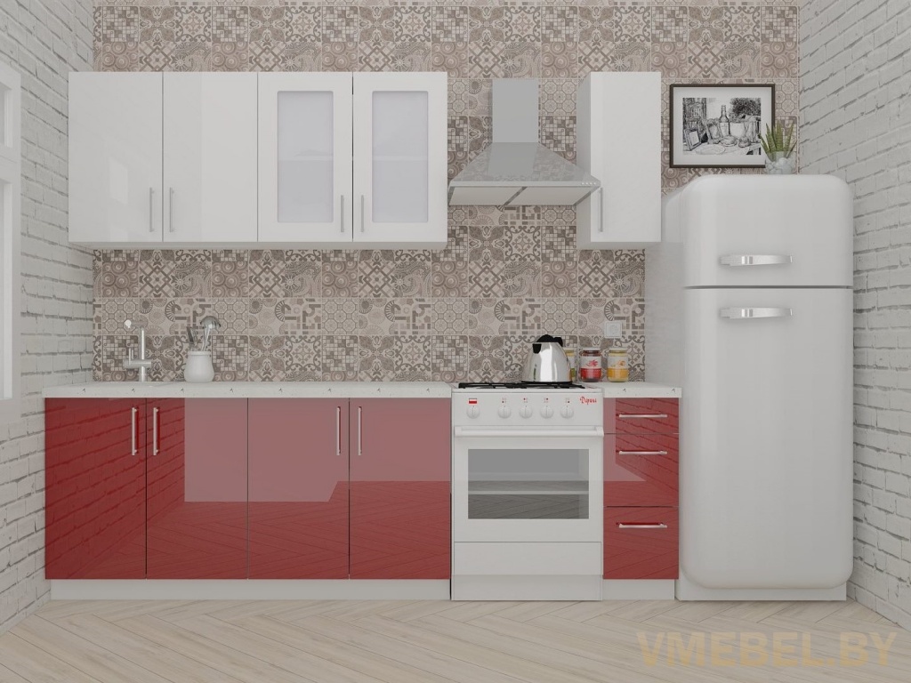 Основные Длина кухни: 190 см Конструкция кухни: линейная Материал каркаса: ЛДСП Эггер Белый базовый 18мм W908 SM Тип фасада: прямой Материал верхних фасадов: Пластик белый Материал нижних фасадов: Пластик темно-красный Столешница: отдельная на каждый шкаф либо цельная на каждый участок Материал столешницы: Plattan (38 мм) Мрамор марквина белый 3028 (влагозащитная ДСП EGGER с каплеуловителем) Выдвижные ящики: 3 шт. Направляющие: шариковые направляющие полного выдвижения с доводчиками GTV Versalite Петли: Петля накладная с доводчиком GTV PRESTIGE Навесы: Крепление верхних ящиков к стене на регулируемые навесы на монтажную планку, монтажная планка в комплекте Крепление петель к боковине: на евровинтах Конструкция задней стенки: премиум (задняя стенка ящиков вставляется в фрезеруемый в паз) Цоколь: пластиковый белый H-100 Сушка: белая стандарт Ручка: Ручка UA-337 160 мм алюминий