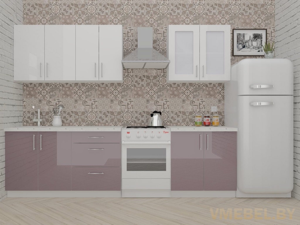 Основные Длина кухни: 220 см Конструкция кухни: линейная Материал каркаса: ЛДСП Эггер Белый базовый 18мм W908 SM Тип фасада: прямой Материал верхних фасадов: Постформинг (пластик) белый Материал нижних фасадов: Постформинг (пластик) глициния Столешница: отдельная на каждый шкаф либо цельная на каждый участок Материал столешницы: Plattan (38 мм) Мрамор марквина белый 3028 (влагозащитная ДСП EGGER с каплеуловителем) Выдвижные ящики: 3 шт. Направляющие: шариковые направляющие полного выдвижения с доводчиками GTV Versalite Петли: Петля накладная с доводчиком GTV PRESTIGE Навесы: Крепление верхних ящиков к стене на регулируемые навесы на монтажную планку, монтажная планка в комплекте Крепление петель к боковине: на евровинтах Конструкция задней стенки: премиум (задняя стенка ящиков вставляется в фрезеруемый в паз) Цоколь: пластиковый белый H-100 Сушка: белая стандарт Ручка: Ручка UA-337 160 мм алюминий
