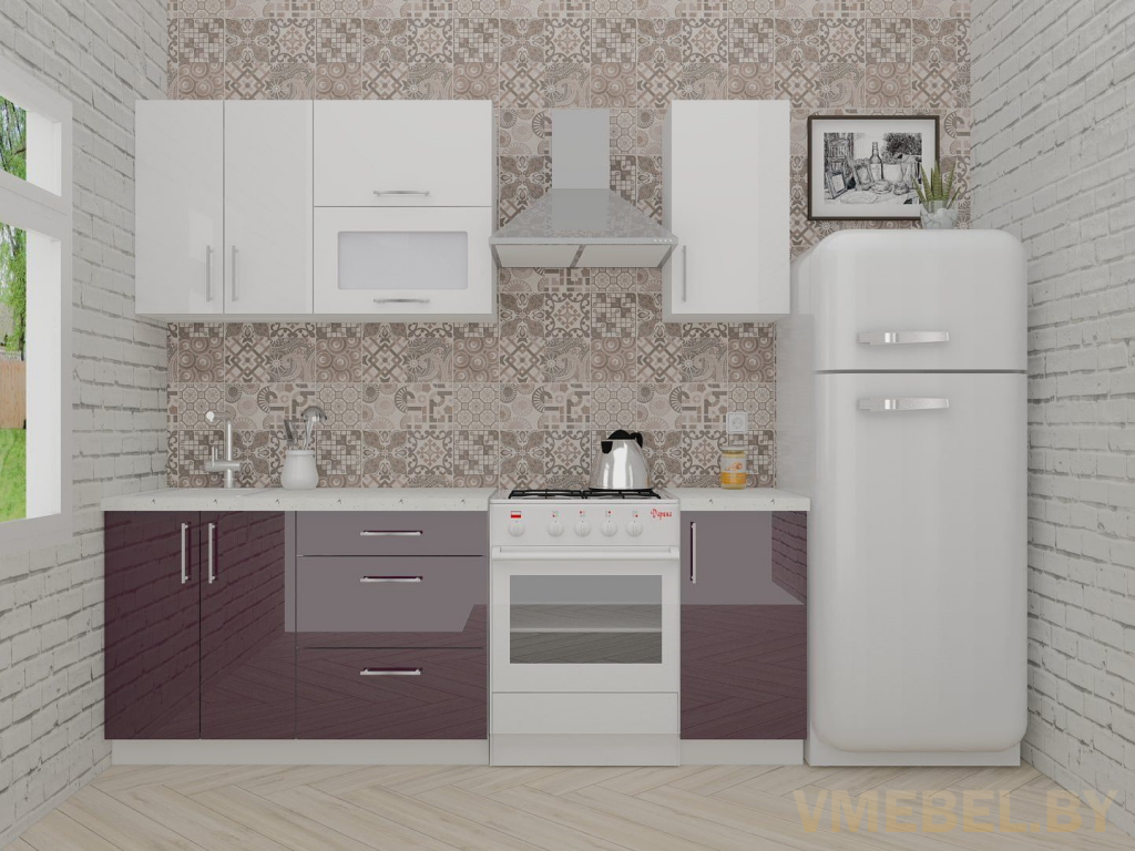 Основные Длина кухни: 160 см Конструкция кухни: линейная Материал каркаса: ЛДСП Эггер Белый базовый 18мм W908 SM Тип фасада: прямой Материал верхних фасадов: Постформинг (пластик) белый Материал нижних фасадов: Постформинг (пластик) фиолетовый Столешница: отдельная на каждый шкаф либо цельная на каждый участок Материал столешницы: Plattan (38 мм) Мрамор марквина белый 3028 (влагозащитная ДСП EGGER с каплеуловителем) Выдвижные ящики: 3 шт. Направляющие: шариковые направляющие полного выдвижения с доводчиками GTV Versalite Петли: Петля накладная с доводчиком GTV PRESTIGE Навесы: Крепление верхних ящиков к стене на регулируемые навесы на монтажную планку, монтажная планка в комплекте Крепление петель к боковине: на евровинтах Конструкция задней стенки: премиум (задняя стенка ящиков вставляется в фрезеруемый в паз) Цоколь: пластиковый белый H-100 Сушка: белая стандарт Ручка: Ручка UA-337 160 мм алюминий