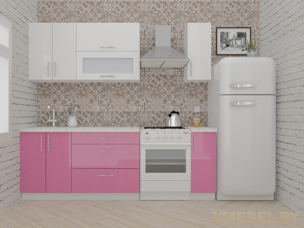 Основные Длина кухни: 170 см Конструкция кухни: линейная Материал каркаса: ЛДСП Эггер Белый базовый 18мм W908 SM Тип фасада: прямой Материал верхних фасадов: Постформинг (пластик) белый Материал нижних фасадов: Постформинг (пластик) розовый Столешница: отдельная на каждый шкаф либо цельная на каждый участок Материал столешницы: Plattan (38 мм) Мрамор марквина белый 3028 (влагозащитная ДСП EGGER с каплеуловителем) Выдвижные ящики: 3 шт. Направляющие: шариковые направляющие полного выдвижения с доводчиками GTV Versalite Петли: Петля накладная с доводчиком GTV PRESTIGE Навесы: Крепление верхних ящиков к стене на регулируемые навесы на монтажную планку, монтажная планка в комплекте Крепление петель к боковине: на евровинтах Конструкция задней стенки: премиум (задняя стенка ящиков вставляется в фрезеруемый в паз) Цоколь: пластиковый белый H-100 Сушка: белая стандарт Ручка: Ручка UA-337 160 мм алюминий
