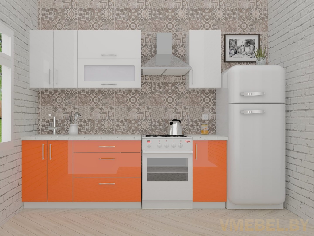 Основные Длина кухни: 180 см Конструкция кухни: линейная Материал каркаса: ЛДСП Эггер Белый базовый 18мм W908 SM Тип фасада: прямой Материал верхних фасадов: Постформинг (пластик) белый Материал нижних фасадов: Постформинг (пластик) яркий оранжевый Столешница: отдельная на каждый шкаф либо цельная на каждый участок Материал столешницы: Plattan (38 мм) Мрамор марквина белый 3028 (влагозащитная ДСП EGGER с каплеуловителем) Выдвижные ящики: 3 шт. Направляющие: шариковые направляющие полного выдвижения с доводчиками GTV Versalite Петли: Петля накладная с доводчиком GTV PRESTIGE Навесы: Крепление верхних ящиков к стене на регулируемые навесы на монтажную планку, монтажная планка в комплекте Крепление петель к боковине: на евровинтах Конструкция задней стенки: премиум (задняя стенка ящиков вставляется в фрезеруемый в паз) Цоколь: пластиковый белый H-100 Сушка: белая стандарт Ручка: Ручка UA-337 160 мм алюминий