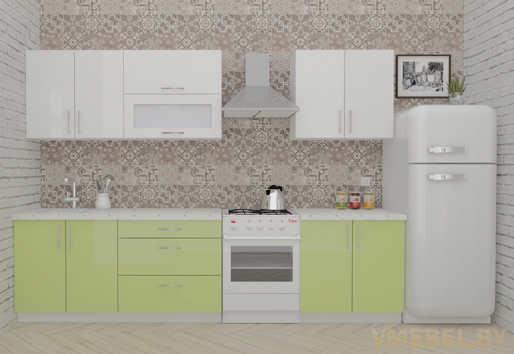 Основные Длина кухни: 240 см Конструкция кухни: линейная Материал каркаса: ЛДСП Эггер Белый базовый 18мм W908 SM Тип фасада: прямой Материал верхних фасадов: Постформинг (пластик) белый Материал нижних фасадов: Постформинг (пластик) нежно-зеленый Столешница: отдельная на каждый шкаф либо цельная на каждый участок Материал столешницы: Plattan (38 мм) Мрамор марквина белый 3028 (влагозащитная ДСП EGGER с каплеуловителем) Выдвижные ящики: 3 шт. Направляющие: шариковые направляющие полного выдвижения с доводчиками GTV Versalite Петли: Петля накладная с доводчиком GTV PRESTIGE Навесы: Крепление верхних ящиков к стене на регулируемые навесы на монтажную планку, монтажная планка в комплекте Крепление петель к боковине: на евровинтах Конструкция задней стенки: премиум (задняя стенка ящиков вставляется в фрезеруемый в паз) Цоколь: пластиковый белый H-100 Сушка: белая стандарт Ручка: Ручка UA-337 160 мм алюминий