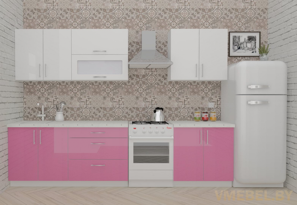 Основные Длина кухни: 240 см Конструкция кухни: линейная Материал каркаса: ЛДСП Эггер Белый базовый 18мм W908 SM Тип фасада: прямой Материал верхних фасадов: Постформинг (пластик) белый Материал нижних фасадов: Постформинг (пластик) розовый Столешница: отдельная на каждый шкаф либо цельная на каждый участок Материал столешницы: Plattan (38 мм) Мрамор марквина белый 3028 (влагозащитная ДСП EGGER с каплеуловителем) Выдвижные ящики: 3 шт. Направляющие: шариковые направляющие полного выдвижения с доводчиками GTV Versalite Петли: Петля накладная с доводчиком GTV PRESTIGE Навесы: Крепление верхних ящиков к стене на регулируемые навесы на монтажную планку, монтажная планка в комплекте Крепление петель к боковине: на евровинтах Конструкция задней стенки: премиум (задняя стенка ящиков вставляется в фрезеруемый в паз) Цоколь: пластиковый белый H-100 Сушка: белая стандарт Ручка: Ручка UA-337 160 мм алюминий