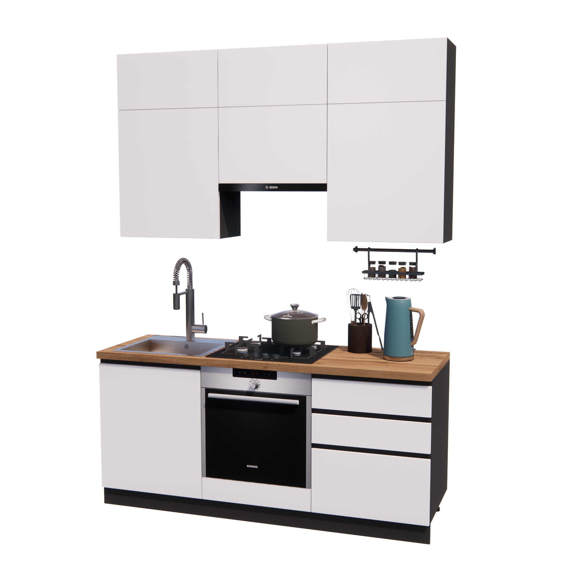 Глубина нижних шкафов: 60 см (48 см глубина по корпусу)