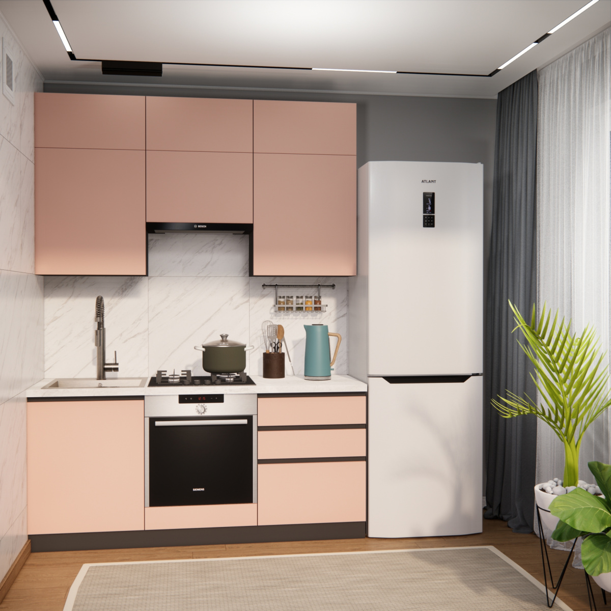 Цвет нижних фасадов: пудровый