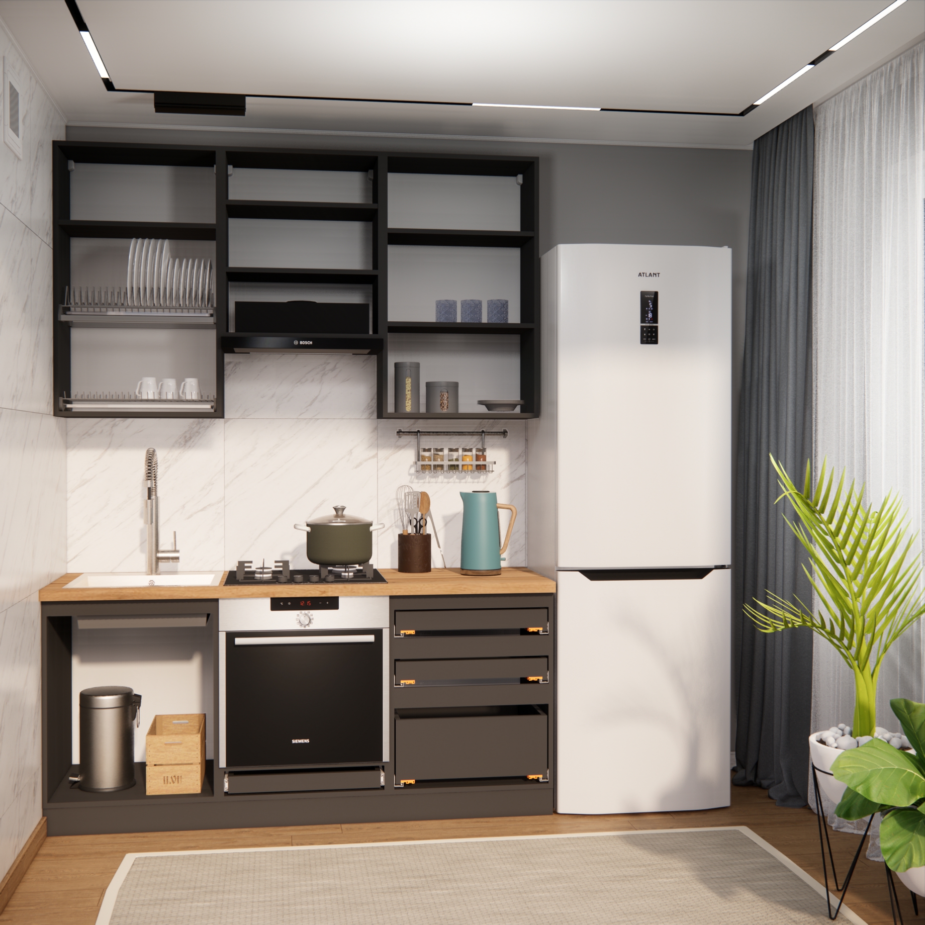 Глубина нижних шкафов: 60 см (48 см глубина по корпусу)