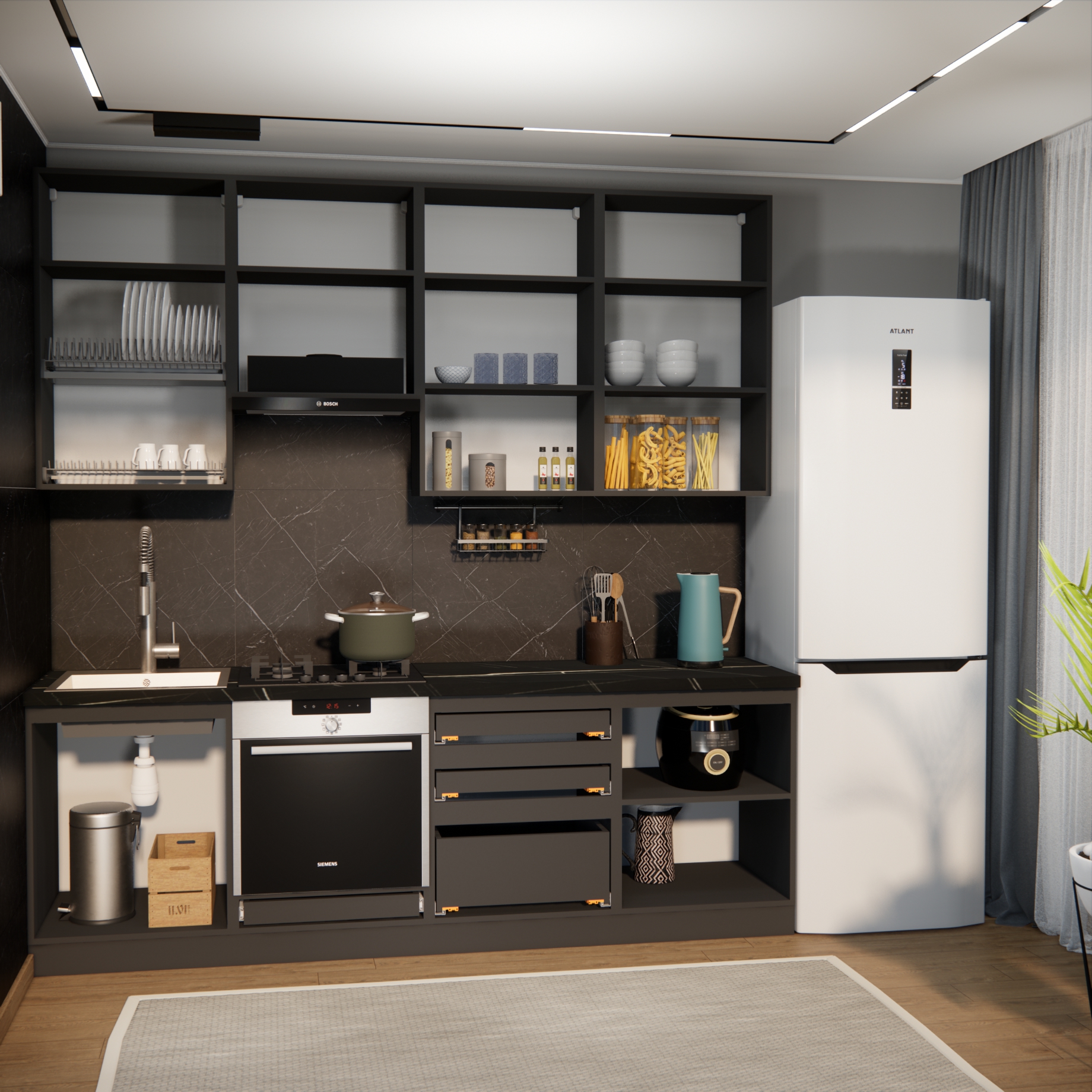 Глубина нижних шкафов: 60 см (48 см глубина по корпусу)
