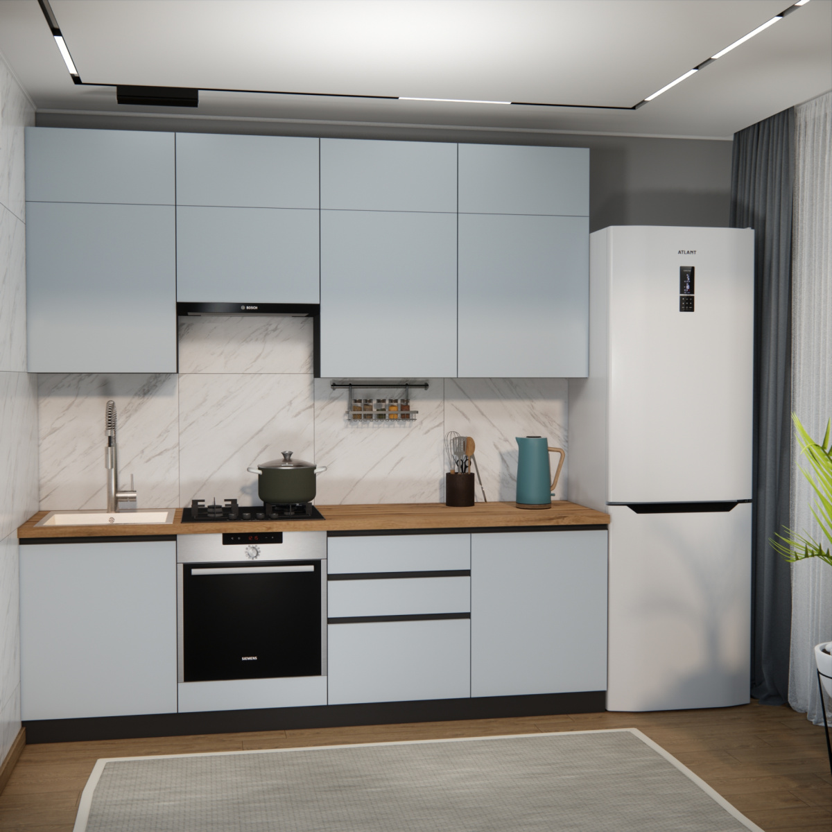 Цвет нижних фасадов: сумеречный голубой
