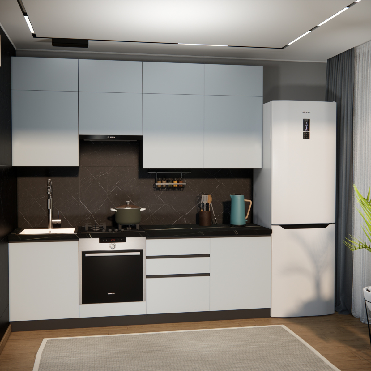 Цвет нижних фасадов: сумеречный голубой