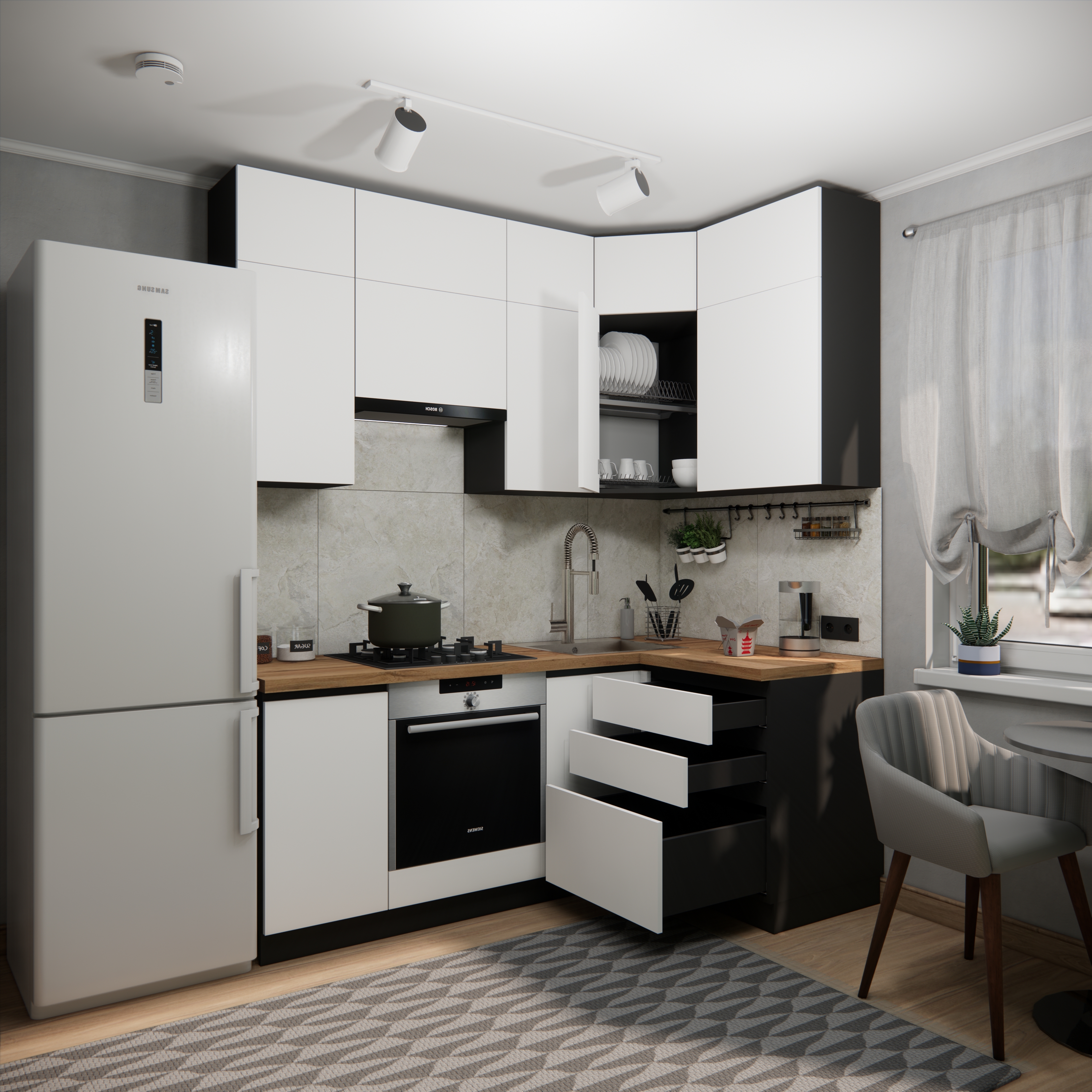 Глубина нижних шкафов: 60 см (48 см глубина по корпусу)