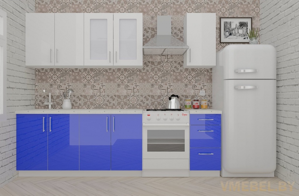 Основные Длина кухни: 200 см Конструкция кухни: линейная Материал каркаса: ЛДСП Эггер Белый базовый 18мм W908 SM Тип фасада: прямой Материал верхних фасадов: Постформинг (пластик) белый Материал нижних фасадов: Постформинг (пластик) глубокий синий Столешница: отдельная на каждый шкаф либо цельная на каждый участок Материал столешницы: Plattan (38 мм) Мрамор марквина белый 3028 (влагозащитная ДСП EGGER с каплеуловителем) Выдвижные ящики: 3 шт. Направляющие: шариковые направляющие полного выдвижения с доводчиками GTV Versalite Петли: Петля накладная с доводчиком GTV PRESTIGE Навесы: Крепление верхних ящиков к стене на регулируемые навесы на монтажную планку, монтажная планка в комплекте Крепление петель к боковине: на евровинтах Конструкция задней стенки: премиум (задняя стенка ящиков вставляется в фрезеруемый в паз) Цоколь: пластиковый белый H-100 Сушка: белая стандарт Ручка: Ручка UA-337 160 мм алюминий