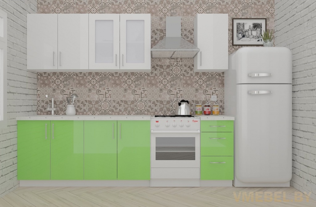 Основные Длина кухни: 200 см Конструкция кухни: линейная Материал каркаса: ЛДСП Эггер Белый базовый 18мм W908 SM Тип фасада: прямой Материал верхних фасадов: Постформинг (пластик) белый Материал нижних фасадов: Постформинг (пластик) яблоко Столешница: отдельная на каждый шкаф либо цельная на каждый участок Материал столешницы: Plattan (38 мм) Мрамор марквина белый 3028 (влагозащитная ДСП EGGER с каплеуловителем) Выдвижные ящики: 3 шт. Направляющие: шариковые направляющие полного выдвижения с доводчиками GTV Versalite Петли: Петля накладная с доводчиком GTV PRESTIGE Навесы: Крепление верхних ящиков к стене на регулируемые навесы на монтажную планку, монтажная планка в комплекте Крепление петель к боковине: на евровинтах Конструкция задней стенки: премиум (задняя стенка ящиков вставляется в фрезеруемый в паз) Цоколь: пластиковый белый H-100 Сушка: белая стандарт Ручка: Ручка UA-337 160 мм алюминий