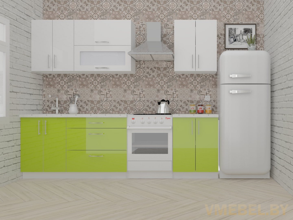 Основные Длина кухни: 200 см Конструкция кухни: линейная Материал каркаса: ЛДСП Эггер Белый базовый 18мм W908 SM Тип фасада: прямой Материал верхних фасадов: Постформинг (пластик) белый Материал нижних фасадов: Постформинг (пластик) лайм яркий Столешница: отдельная на каждый шкаф либо цельная на каждый участок Материал столешницы: Plattan (38 мм) Мрамор марквина белый 3028 (влагозащитная ДСП EGGER с каплеуловителем) Выдвижные ящики: 3 шт. Направляющие: шариковые направляющие полного выдвижения с доводчиками GTV Versalite Петли: Петля накладная с доводчиком GTV PRESTIGE Навесы: Крепление верхних ящиков к стене на регулируемые навесы на монтажную планку, монтажная планка в комплекте Крепление петель к боковине: на евровинтах Конструкция задней стенки: премиум (задняя стенка ящиков вставляется в фрезеруемый в паз) Цоколь: пластиковый белый H-100 Сушка: белая стандарт Ручка: Ручка UA-337 160 мм алюминий