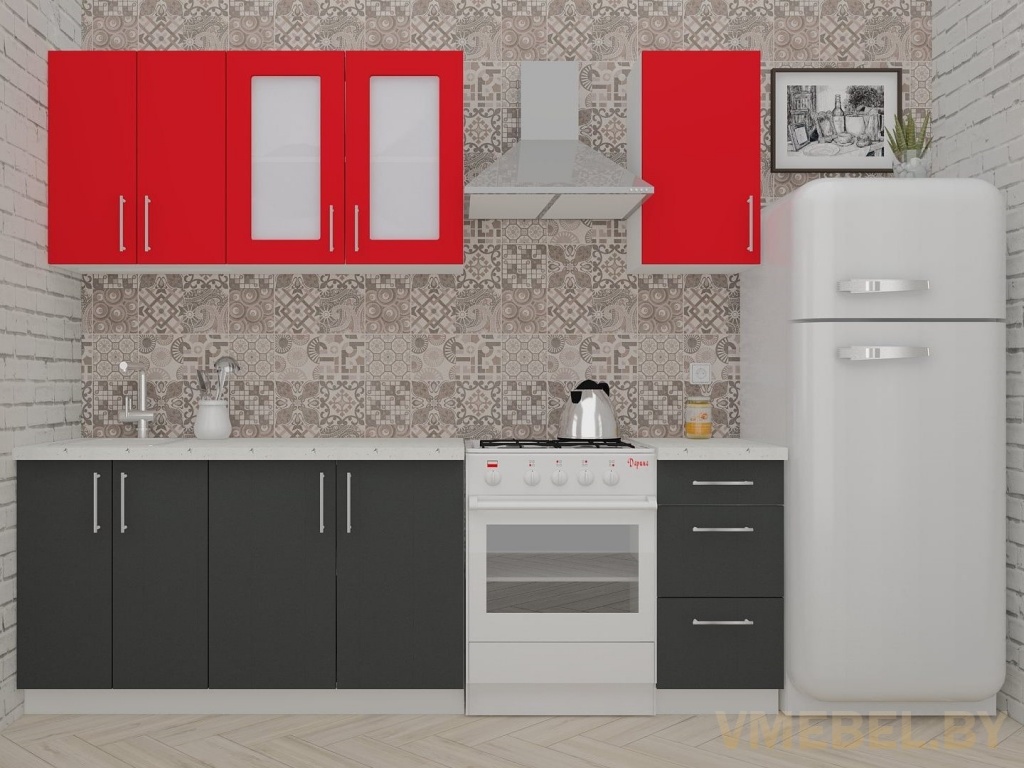 Основные Длина кухни: 180 см Конструкция кухни: линейная Материал каркаса: ЛДСП Эггер Белый базовый 18мм W908 SM Тип фасада: прямой Материал верхних фасадов: ЛДСП красный чили Материал нижних фасадов: ЛДСП антрацит Столешница: отдельная на каждый шкаф либо цельная на каждый участок Материал столешницы: Plattan (38 мм) Мрамор марквина белый 3028 (влагозащитная ДСП EGGER с каплеуловителем) Выдвижные ящики: 3 шт. Направляющие: шариковые направляющие полного выдвижения с доводчиками GTV Versalite Петли: Петля накладная с доводчиком GTV PRESTIGE Навесы: Крепление верхних ящиков к стене на регулируемые навесы на монтажную планку, монтажная планка в комплекте Крепление петель к боковине: на евровинтах Конструкция задней стенки: премиум (задняя стенка ящиков вставляется в фрезеруемый в паз) Цоколь: пластиковый белый H-100 Сушка: белая стандарт Ручка: Ручка UA-337 160 мм алюминий