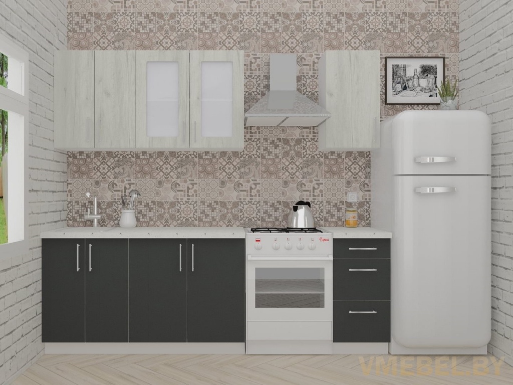 Основные Длина кухни: 180 см Конструкция кухни: линейная Материал каркаса: ЛДСП Эггер Белый базовый 18мм W908 SM Тип фасада: прямой Материал верхних фасадов: ЛДСП дуб крафт белый Материал нижних фасадов: ЛДСП антрацит Столешница: отдельная на каждый шкаф либо цельная на каждый участок Материал столешницы: Plattan (38 мм) Мрамор марквина белый 3028 (влагозащитная ДСП EGGER с каплеуловителем) Выдвижные ящики: 3 шт. Направляющие: шариковые направляющие полного выдвижения с доводчиками GTV Versalite Петли: Петля накладная с доводчиком GTV PRESTIGE Навесы: Крепление верхних ящиков к стене на регулируемые навесы на монтажную планку, монтажная планка в комплекте Крепление петель к боковине: на евровинтах Конструкция задней стенки: премиум (задняя стенка ящиков вставляется в фрезеруемый в паз) Цоколь: пластиковый белый H-100 Сушка: белая стандарт Ручка: Ручка UA-337 160 мм алюминий