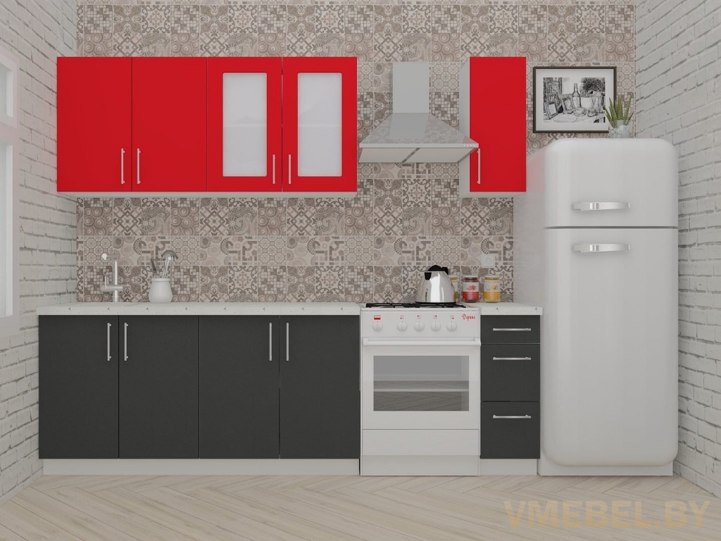 Основные Длина кухни: 190 см Конструкция кухни: линейная Материал каркаса: ЛДСП Эггер Белый базовый 18мм W908 SM Тип фасада: прямой Материал верхних фасадов: ЛДСП красный чили Материал нижних фасадов: ЛДСП антрацит Столешница: отдельная на каждый шкаф либо цельная на каждый участок Материал столешницы: Plattan (38 мм) Мрамор марквина белый 3028 (влагозащитная ДСП EGGER с каплеуловителем) Выдвижные ящики: 3 шт. Направляющие: шариковые направляющие полного выдвижения с доводчиками GTV Versalite Петли: Петля накладная с доводчиком GTV PRESTIGE Навесы: Крепление верхних ящиков к стене на регулируемые навесы на монтажную планку, монтажная планка в комплекте Крепление петель к боковине: на евровинтах Конструкция задней стенки: премиум (задняя стенка ящиков вставляется в фрезеруемый в паз) Цоколь: пластиковый белый H-100 Сушка: белая стандарт Ручка: Ручка UA-337 160 мм алюминий