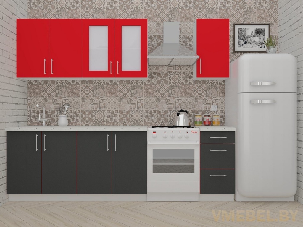 Основные Длина кухни: 200 см Конструкция кухни: линейная Материал каркаса: ЛДСП Эггер Белый базовый 18мм W908 SM Тип фасада: прямой Материал верхних фасадов: ЛДСП красный чили Материал нижних фасадов: ЛДСП антрацит Столешница: отдельная на каждый шкаф либо цельная на каждый участок Материал столешницы: Plattan (38 мм) Мрамор марквина белый 3028 (влагозащитная ДСП EGGER с каплеуловителем) Выдвижные ящики: 3 шт. Направляющие: шариковые направляющие полного выдвижения с доводчиками GTV Versalite Петли: Петля накладная с доводчиком GTV PRESTIGE Навесы: Крепление верхних ящиков к стене на регулируемые навесы на монтажную планку, монтажная планка в комплекте Крепление петель к боковине: на евровинтах Конструкция задней стенки: премиум (задняя стенка ящиков вставляется в фрезеруемый в паз) Цоколь: пластиковый белый H-100 Сушка: белая стандарт Ручка: Ручка UA-337 160 мм алюминий