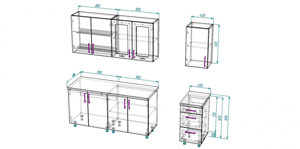 Высота верхних шкафов: 72 см