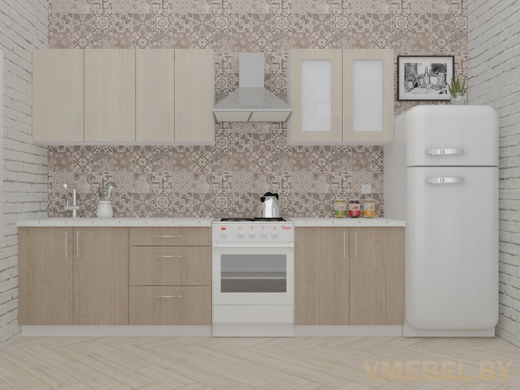 Основные Длина кухни: 220 см Конструкция кухни: линейная Материал каркаса: ЛДСП Эггер Белый базовый 18мм W908 SM Тип фасада: прямой Материал верхних фасадов: ЛДСП крослайн карамель Материал нижних фасадов: ЛДСП крослайн латте Столешница: отдельная на каждый шкаф либо цельная на каждый участок Материал столешницы: Plattan (38 мм) Мрамор марквина белый 3028 (влагозащитная ДСП EGGER с каплеуловителем) Выдвижные ящики: 3 шт. Направляющие: шариковые направляющие полного выдвижения с доводчиками GTV Versalite Петли: Петля накладная с доводчиком GTV PRESTIGE Навесы: Крепление верхних ящиков к стене на регулируемые навесы на монтажную планку, монтажная планка в комплекте Крепление петель к боковине: на евровинтах Конструкция задней стенки: премиум (задняя стенка ящиков вставляется в фрезеруемый в паз) Цоколь: пластиковый белый H-100 Сушка: белая стандарт Ручка: Ручка UA-337 160 мм алюминий