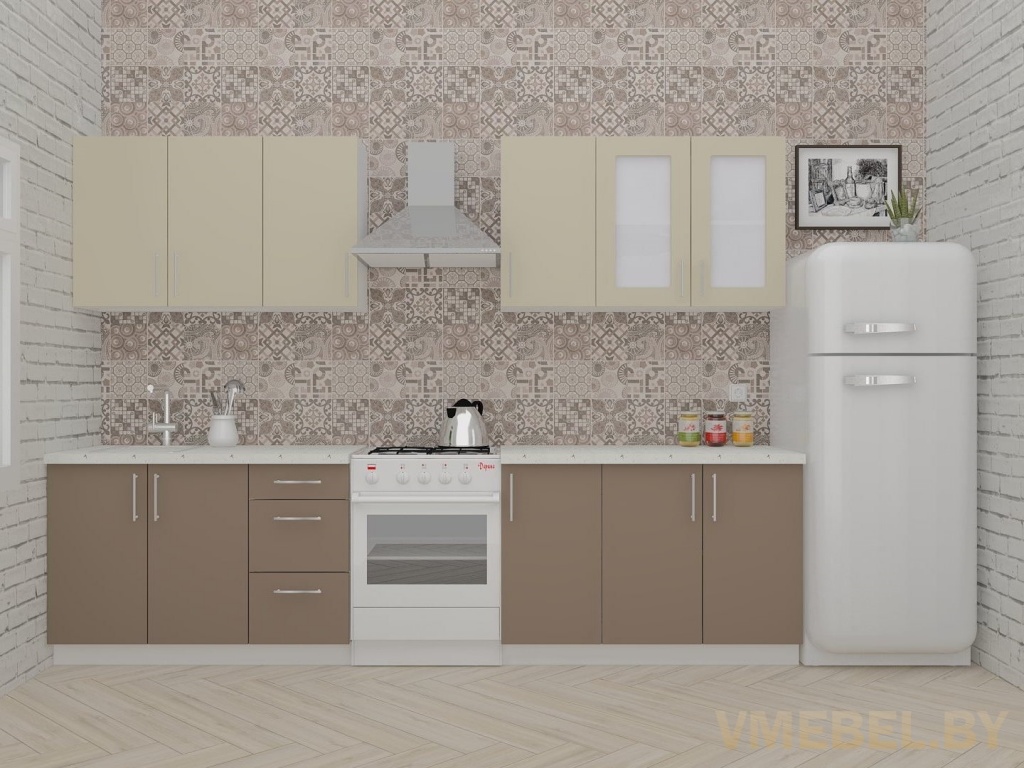 Основные Длина кухни: 240 см Конструкция кухни: линейная Материал каркаса: ЛДСП Эггер Белый базовый 18мм W908 SM Тип фасада: прямой Материал верхних фасадов: ЛДСП бежевый Материал нижних фасадов: ЛДСП латте Столешница: отдельная на каждый шкаф либо цельная на каждый участок Материал столешницы: Plattan (38 мм) Мрамор марквина белый 3028 (влагозащитная ДСП EGGER с каплеуловителем) Выдвижные ящики: 3 шт. Направляющие: шариковые направляющие полного выдвижения с доводчиками GTV Versalite Петли: Петля накладная с доводчиком GTV PRESTIGE Навесы: Крепление верхних ящиков к стене на регулируемые навесы на монтажную планку, монтажная планка в комплекте Крепление петель к боковине: на евровинтах Конструкция задней стенки: премиум (задняя стенка ящиков вставляется в фрезеруемый в паз) Цоколь: пластиковый белый H-100 Сушка: белая стандарт Ручка: Ручка UA-337 160 мм алюминий