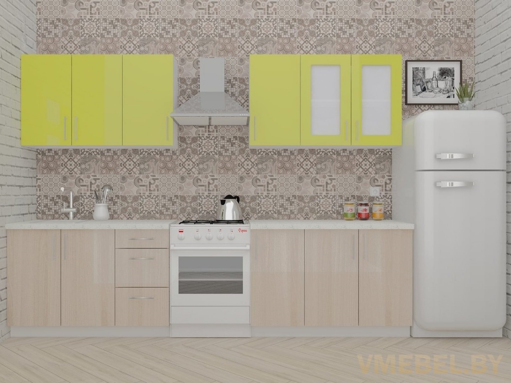 Основные Длина кухни: 240 см Конструкция кухни: линейная Материал каркаса: ЛДСП Эггер Белый базовый 18мм W908 SM Тип фасада: прямой Материал верхних фасадов: ЛДСП зеленый лайм Материал нижних фасадов: ЛДСП ясень шимо светлый Столешница: отдельная на каждый шкаф либо цельная на каждый участок Материал столешницы: Plattan (38 мм) Мрамор марквина белый 3028 (влагозащитная ДСП EGGER с каплеуловителем) Выдвижные ящики: 3 шт. Направляющие: шариковые направляющие полного выдвижения с доводчиками GTV Versalite Петли: Петля накладная с доводчиком GTV PRESTIGE Навесы: Крепление верхних ящиков к стене на регулируемые навесы на монтажную планку, монтажная планка в комплекте Крепление петель к боковине: на евровинтах Конструкция задней стенки: премиум (задняя стенка ящиков вставляется в фрезеруемый в паз) Цоколь: пластиковый белый H-100 Сушка: белая стандарт Ручка: Ручка UA-337 160 мм алюминий