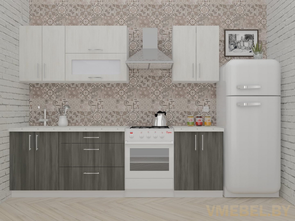 Основные Длина кухни: 200 см Конструкция кухни: линейная Материал каркаса: ЛДСП Эггер Белый базовый 18мм W908 SM Тип фасада: прямой Материал верхних фасадов: ЛДСП северное дерево светлое Материал нижних фасадов: ЛДСП северное дерево темное Столешница: отдельная на каждый шкаф либо цельная на каждый участок Материал столешницы: Plattan (38 мм) Мрамор марквина белый 3028 (влагозащитная ДСП EGGER с каплеуловителем) Выдвижные ящики: 3 шт. Направляющие: шариковые направляющие полного выдвижения с доводчиками GTV Versalite Петли: Петля накладная с доводчиком GTV PRESTIGE Навесы: Крепление верхних ящиков к стене на регулируемые навесы на монтажную планку, монтажная планка в комплекте Крепление петель к боковине: на евровинтах Конструкция задней стенки: премиум (задняя стенка ящиков вставляется в фрезеруемый в паз) Цоколь: пластиковый белый H-100 Сушка: белая стандарт Ручка: Ручка UA-337 160 мм алюминий