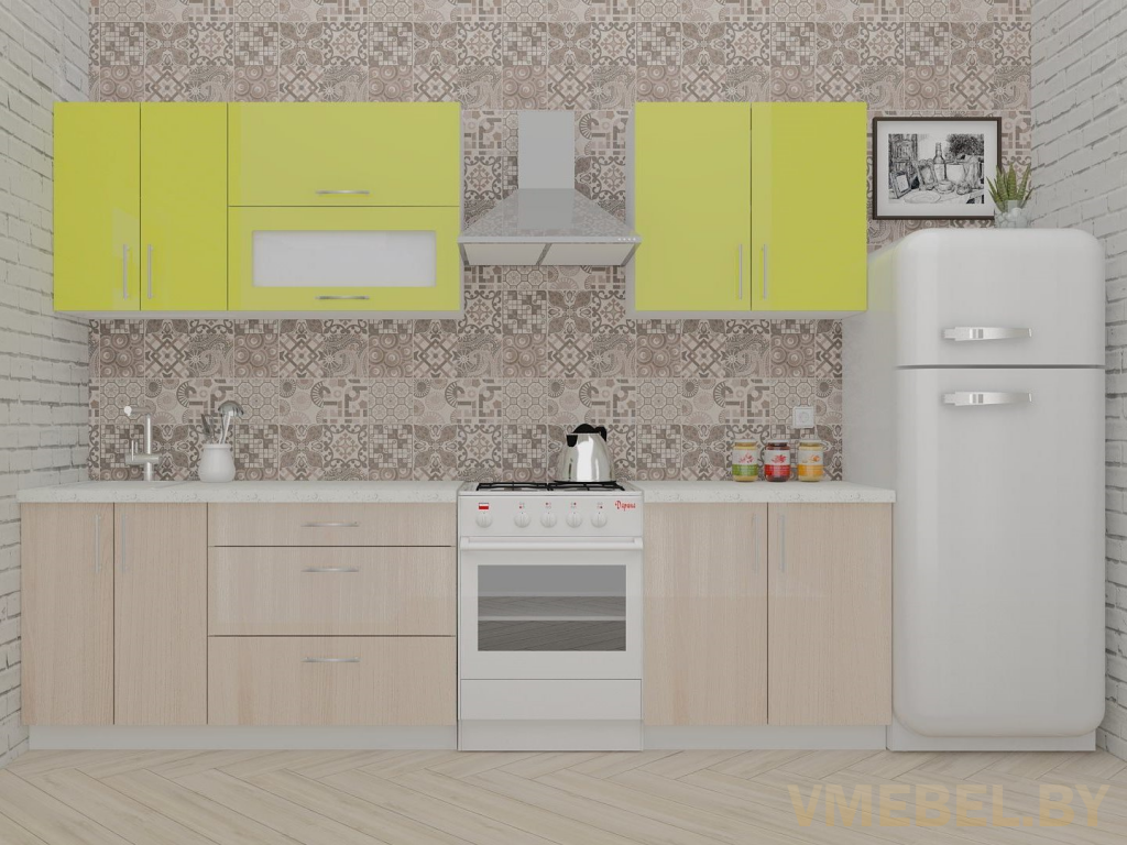 Основные Длина кухни: 220 см Конструкция кухни: линейная Материал каркаса: ЛДСП Эггер Белый базовый 18мм W908 SM Тип фасада: прямой Материал верхних фасадов: ЛДСП зеленый лайм Материал нижних фасадов: ЛДСП ясень шимо светлый Столешница: отдельная на каждый шкаф либо цельная на каждый участок Материал столешницы: Plattan (38 мм) Мрамор марквина белый 3028 (влагозащитная ДСП EGGER с каплеуловителем) Выдвижные ящики: 3 шт. Направляющие: шариковые направляющие полного выдвижения с доводчиками GTV Versalite Петли: Петля накладная с доводчиком GTV PRESTIGE Навесы: Крепление верхних ящиков к стене на регулируемые навесы на монтажную планку, монтажная планка в комплекте Крепление петель к боковине: на евровинтах Конструкция задней стенки: премиум (задняя стенка ящиков вставляется в фрезеруемый в паз) Цоколь: пластиковый белый H-100 Сушка: белая стандарт Ручка: Ручка UA-337 160 мм алюминий