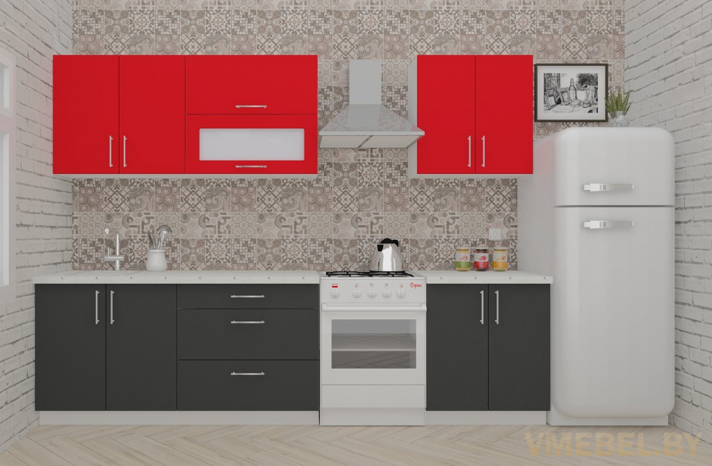 Основные Длина кухни: 230 см Конструкция кухни: линейная Материал каркаса: ЛДСП Эггер Белый базовый 18мм W908 SM Тип фасада: прямой Материал верхних фасадов: ЛДСП красный чили Материал нижних фасадов: ЛДСП антрацит Столешница: отдельная на каждый шкаф либо цельная на каждый участок Материал столешницы: Plattan (38 мм) Мрамор марквина белый 3028 (влагозащитная ДСП EGGER с каплеуловителем) Выдвижные ящики: 3 шт. Направляющие: шариковые направляющие полного выдвижения с доводчиками GTV Versalite Петли: Петля накладная с доводчиком GTV PRESTIGE Навесы: Крепление верхних ящиков к стене на регулируемые навесы на монтажную планку, монтажная планка в комплекте Крепление петель к боковине: на евровинтах Конструкция задней стенки: премиум (задняя стенка ящиков вставляется в фрезеруемый в паз) Цоколь: пластиковый белый H-100 Сушка: белая стандарт Ручка: Ручка UA-337 160 мм алюминий