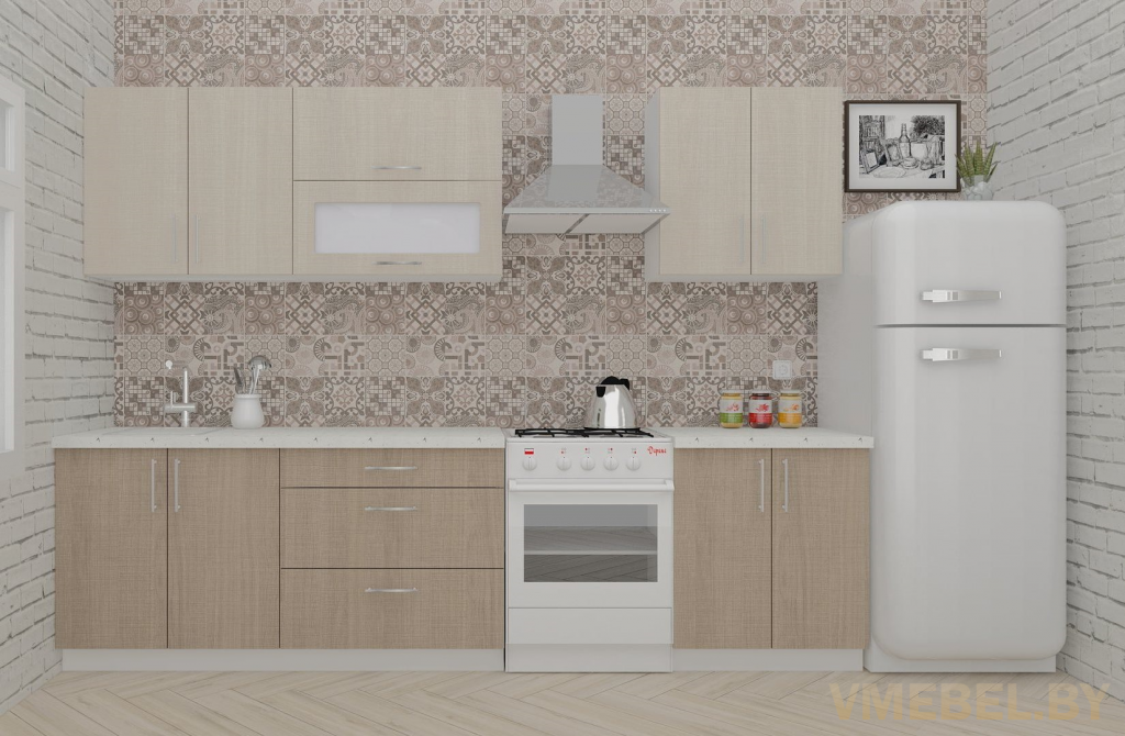Основные Длина кухни: 230 см Конструкция кухни: линейная Материал каркаса: ЛДСП Эггер Белый базовый 18мм W908 SM Тип фасада: прямой Материал верхних фасадов: ЛДСП крослайн карамель Материал нижних фасадов: ЛДСП крослайн латте Столешница: отдельная на каждый шкаф либо цельная на каждый участок Материал столешницы: Plattan (38 мм) Мрамор марквина белый 3028 (влагозащитная ДСП EGGER с каплеуловителем) Выдвижные ящики: 3 шт. Направляющие: шариковые направляющие полного выдвижения с доводчиками GTV Versalite Петли: Петля накладная с доводчиком GTV PRESTIGE Навесы: Крепление верхних ящиков к стене на регулируемые навесы на монтажную планку, монтажная планка в комплекте Крепление петель к боковине: на евровинтах Конструкция задней стенки: премиум (задняя стенка ящиков вставляется в фрезеруемый в паз) Цоколь: пластиковый белый H-100 Сушка: белая стандарт Ручка: Ручка UA-337 160 мм алюминий