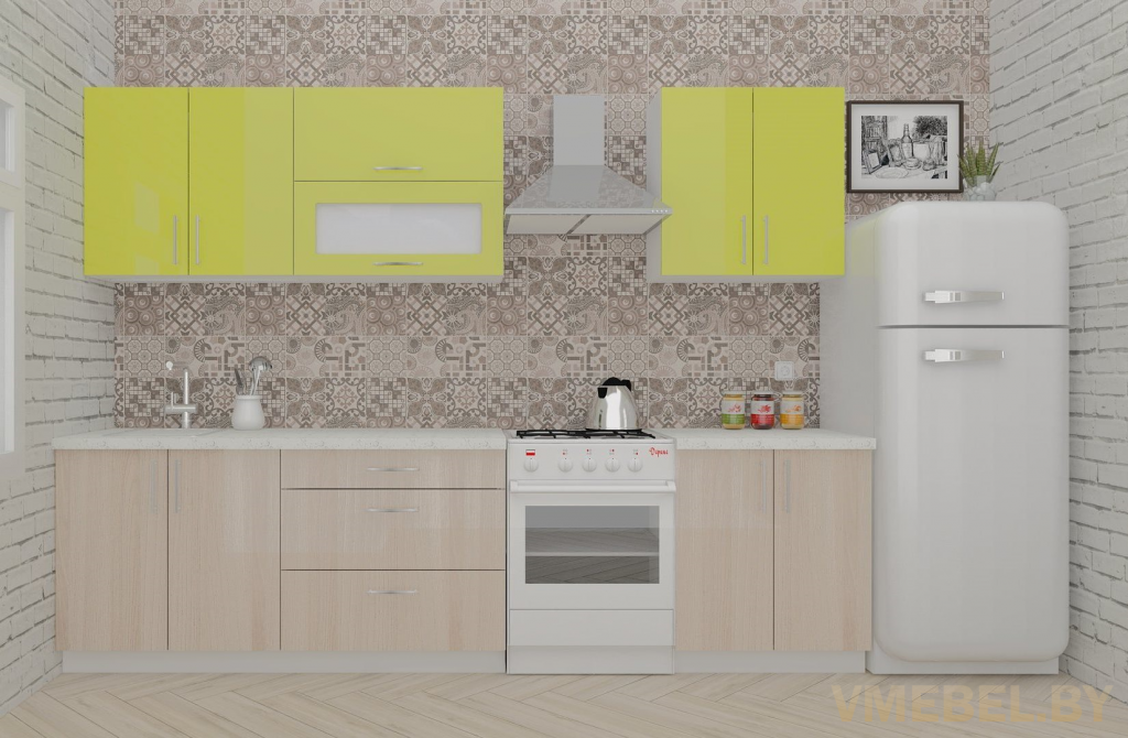 Основные Длина кухни: 230 см Конструкция кухни: линейная Материал каркаса: ЛДСП Эггер Белый базовый 18мм W908 SM Тип фасада: прямой Материал верхних фасадов: ЛДСП зеленый лайм Материал нижних фасадов: ЛДСП ясень шимо светлый Столешница: отдельная на каждый шкаф либо цельная на каждый участок Материал столешницы: Plattan (38 мм) Мрамор марквина белый 3028 (влагозащитная ДСП EGGER с каплеуловителем) Выдвижные ящики: 3 шт. Направляющие: шариковые направляющие полного выдвижения с доводчиками GTV Versalite Петли: Петля накладная с доводчиком GTV PRESTIGE Навесы: Крепление верхних ящиков к стене на регулируемые навесы на монтажную планку, монтажная планка в комплекте Крепление петель к боковине: на евровинтах Конструкция задней стенки: премиум (задняя стенка ящиков вставляется в фрезеруемый в паз) Цоколь: пластиковый белый H-100 Сушка: белая стандарт Ручка: Ручка UA-337 160 мм алюминий