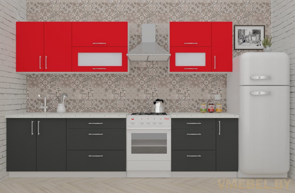 Основные Длина кухни: 250 см Конструкция кухни: линейная Материал каркаса: ЛДСП Эггер Белый базовый 18мм W908 SM Тип фасада: прямой Материал верхних фасадов: ЛДСП красный чили Материал нижних фасадов: ЛДСП антрацит Столешница: отдельная на каждый шкаф либо цельная на каждый участок Материал столешницы: Plattan (38 мм) Мрамор марквина белый 3028 (влагозащитная ДСП EGGER с каплеуловителем) Выдвижные ящики: 3 шт. Направляющие: шариковые направляющие полного выдвижения с доводчиками GTV Versalite Петли: Петля накладная с доводчиком GTV PRESTIGE Навесы: Крепление верхних ящиков к стене на регулируемые навесы на монтажную планку, монтажная планка в комплекте Крепление петель к боковине: на евровинтах Конструкция задней стенки: премиум (задняя стенка ящиков вставляется в фрезеруемый в паз) Цоколь: пластиковый белый H-100 Сушка: белая стандарт Ручка: Ручка UA-337 160 мм алюминий