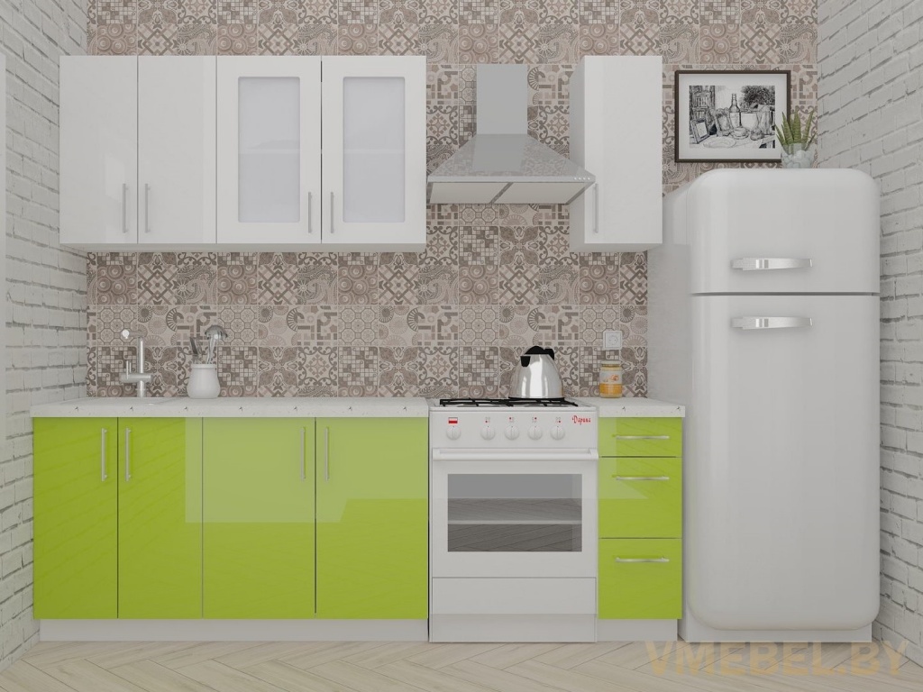 Основные Длина кухни: 170 см Конструкция кухни: линейная Материал каркаса: ЛДСП Эггер Белый базовый 18мм W908 SM Тип фасада: прямой Материал верхних фасадов: Постформинг (пластик) белый Материал нижних фасадов: Постформинг (пластик) лайм яркий Столешница: отдельная на каждый шкаф либо цельная на каждый участок Материал столешницы: Plattan (38 мм) Мрамор марквина белый 3028 (влагозащитная ДСП EGGER с каплеуловителем) Выдвижные ящики: 3 шт. Направляющие: шариковые направляющие полного выдвижения с доводчиками GTV Versalite Петли: Петля накладная с доводчиком GTV PRESTIGE Навесы: Крепление верхних ящиков к стене на регулируемые навесы на монтажную планку, монтажная планка в комплекте Крепление петель к боковине: на евровинтах Конструкция задней стенки: премиум (задняя стенка ящиков вставляется в фрезеруемый в паз) Цоколь: пластиковый белый H-100 Сушка: белая стандарт Ручка: Ручка UA-337 160 мм алюминий