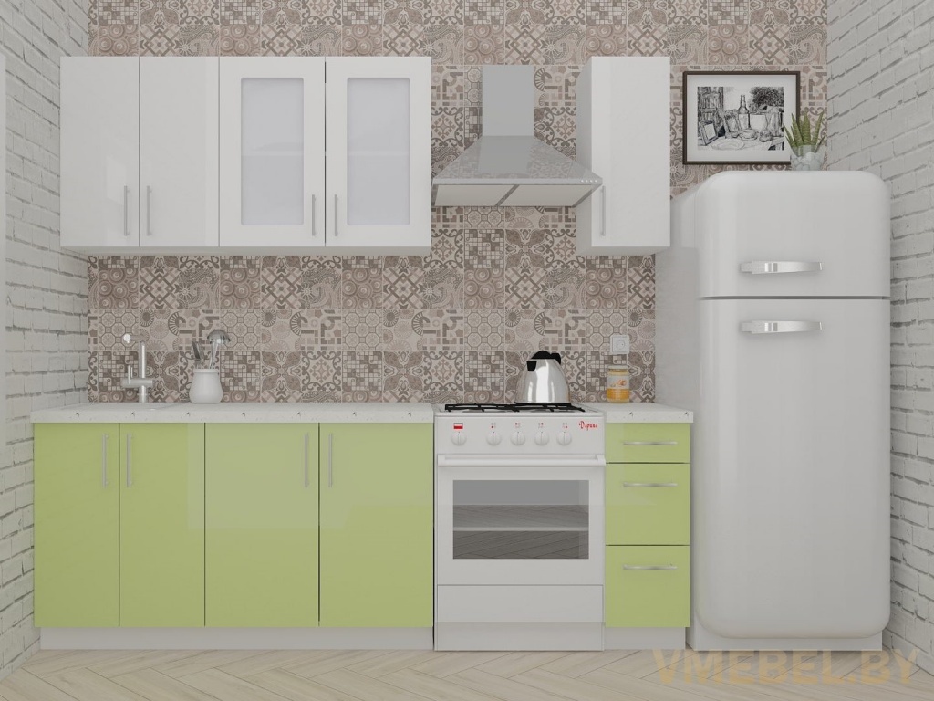 Основные Длина кухни: 170 см Конструкция кухни: линейная Материал каркаса: ЛДСП Эггер Белый базовый 18мм W908 SM Тип фасада: прямой Материал верхних фасадов: Постформинг (пластик) белый Материал нижних фасадов: Постформинг (пластик) нежно- зеленый Столешница: отдельная на каждый шкаф либо цельная на каждый участок Материал столешницы: Plattan (38 мм) Мрамор марквина белый 3028 (влагозащитная ДСП EGGER с каплеуловителем) Выдвижные ящики: 3 шт. Направляющие: шариковые направляющие полного выдвижения с доводчиками GTV Versalite Петли: Петля накладная с доводчиком GTV PRESTIGE Навесы: Крепление верхних ящиков к стене на регулируемые навесы на монтажную планку, монтажная планка в комплекте Крепление петель к боковине: на евровинтах Конструкция задней стенки: премиум (задняя стенка ящиков вставляется в фрезеруемый в паз) Цоколь: пластиковый белый H-100 Сушка: белая стандарт Ручка: Ручка UA-337 160 мм алюминий
