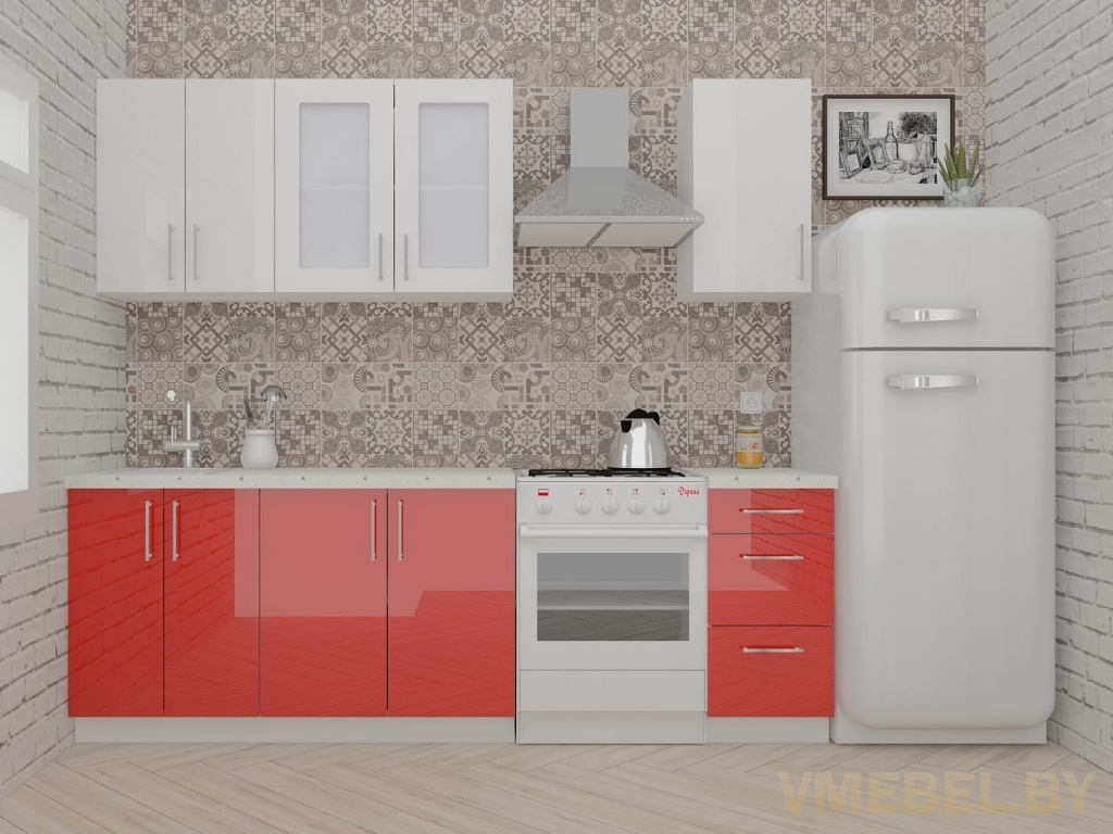 ВерсоЛайн 3-1.8 (белый/красный) Материал фасада Акрил Сушка Белая Фурнитура Blum Артикул: -