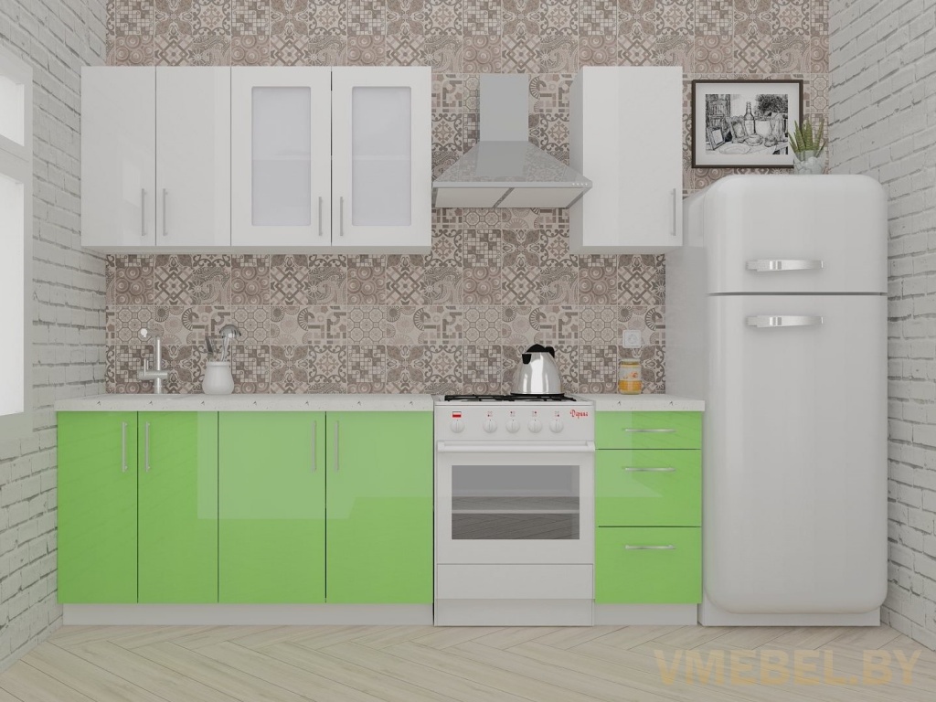 Основные Длина кухни: 180 см Конструкция кухни: линейная Материал каркаса: ЛДСП Эггер Белый базовый 18мм W908 SM Тип фасада: прямой Материал верхних фасадов: Постформинг (пластик) белый Материал нижних фасадов: Постформинг (пластик) яблоко Столешница: отдельная на каждый шкаф либо цельная на каждый участок Материал столешницы: Plattan (38 мм) Мрамор марквина белый 3028 (влагозащитная ДСП EGGER с каплеуловителем) Выдвижные ящики: 3 шт. Направляющие: шариковые направляющие полного выдвижения с доводчиками GTV Versalite Петли: Петля накладная с доводчиком GTV PRESTIGE Навесы: Крепление верхних ящиков к стене на регулируемые навесы на монтажную планку, монтажная планка в комплекте Крепление петель к боковине: на евровинтах Конструкция задней стенки: премиум (задняя стенка ящиков вставляется в фрезеруемый в паз) Цоколь: пластиковый белый H-100 Сушка: белая стандарт Ручка: Ручка UA-337 160 мм алюминий