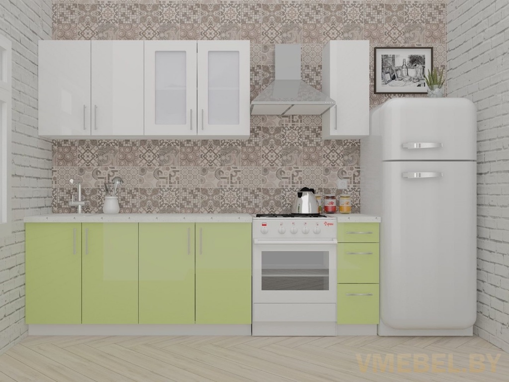 Основные Длина кухни: 190 см Конструкция кухни: линейная Материал каркаса: ЛДСП Эггер Белый базовый 18мм W908 SM Тип фасада: прямой Материал верхних фасадов: Пластик белый Материал нижних фасадов: Пластик нежно-зеленый Столешница: отдельная на каждый шкаф либо цельная на каждый участок Материал столешницы: Plattan (38 мм) Мрамор марквина белый 3028 (влагозащитная ДСП EGGER с каплеуловителем) Выдвижные ящики: 3 шт. Направляющие: шариковые направляющие полного выдвижения с доводчиками GTV Versalite Петли: Петля накладная с доводчиком GTV PRESTIGE Навесы: Крепление верхних ящиков к стене на регулируемые навесы на монтажную планку, монтажная планка в комплекте Крепление петель к боковине: на евровинтах Конструкция задней стенки: премиум (задняя стенка ящиков вставляется в фрезеруемый в паз) Цоколь: пластиковый белый H-100 Сушка: белая стандарт Ручка: Ручка UA-337 160 мм алюминий