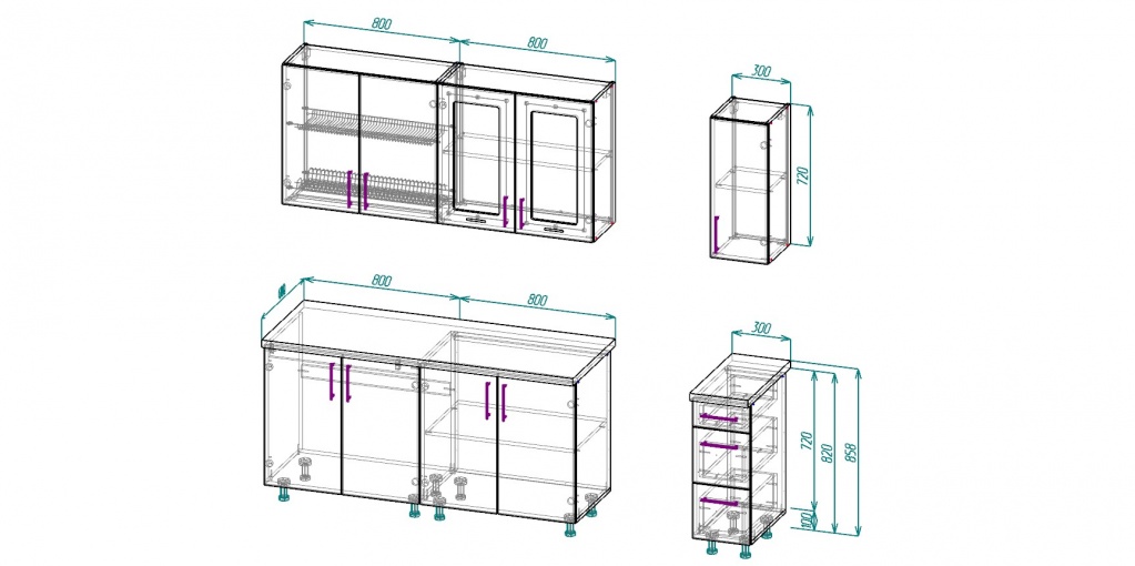 Высота нижних шкафов: 85.8 см (со столешницей)